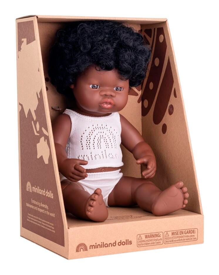 - Miniland baby dolls are available in both boy and girl options in various ethnicities (each sold separately); collect more for a full inclusive baby doll collection