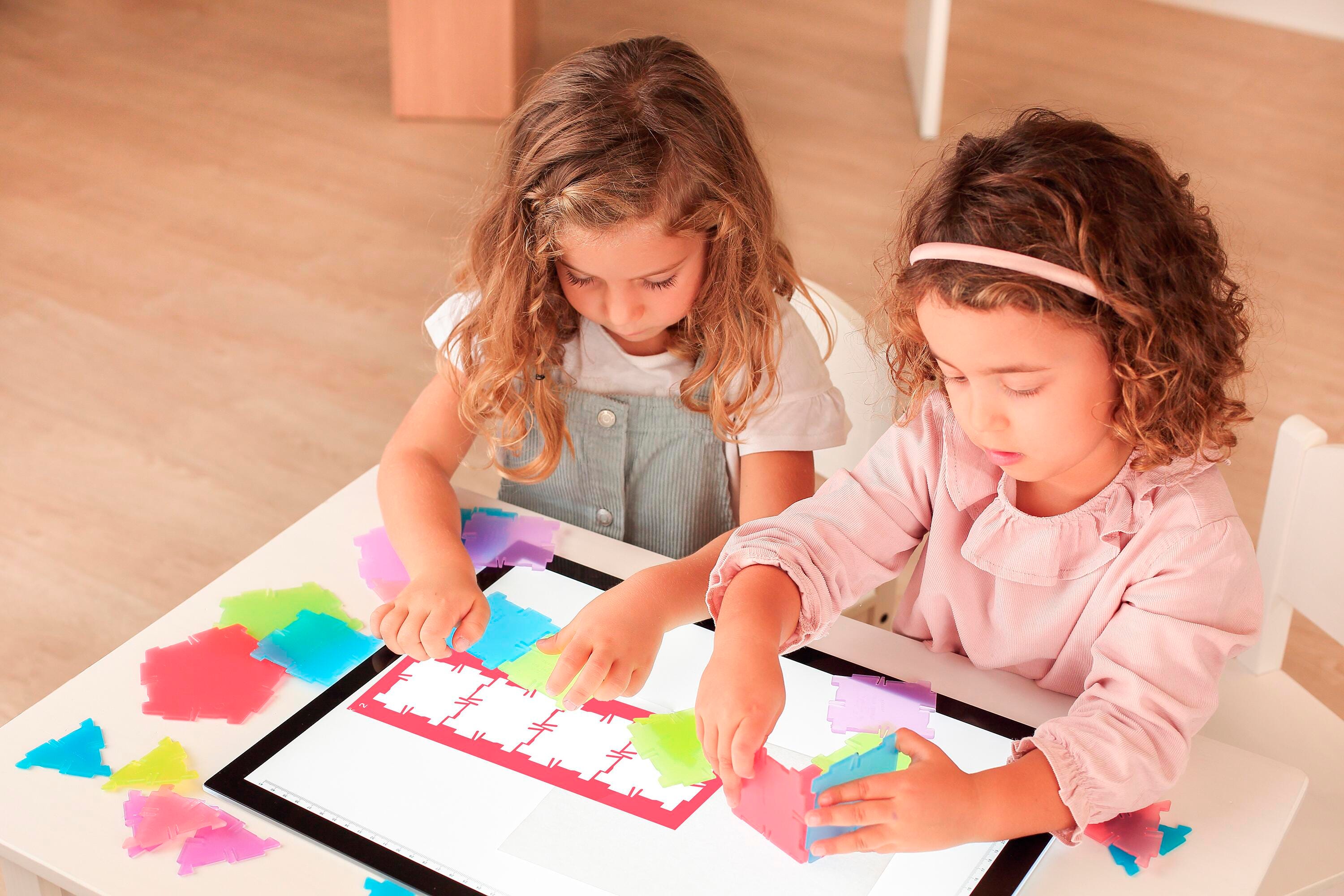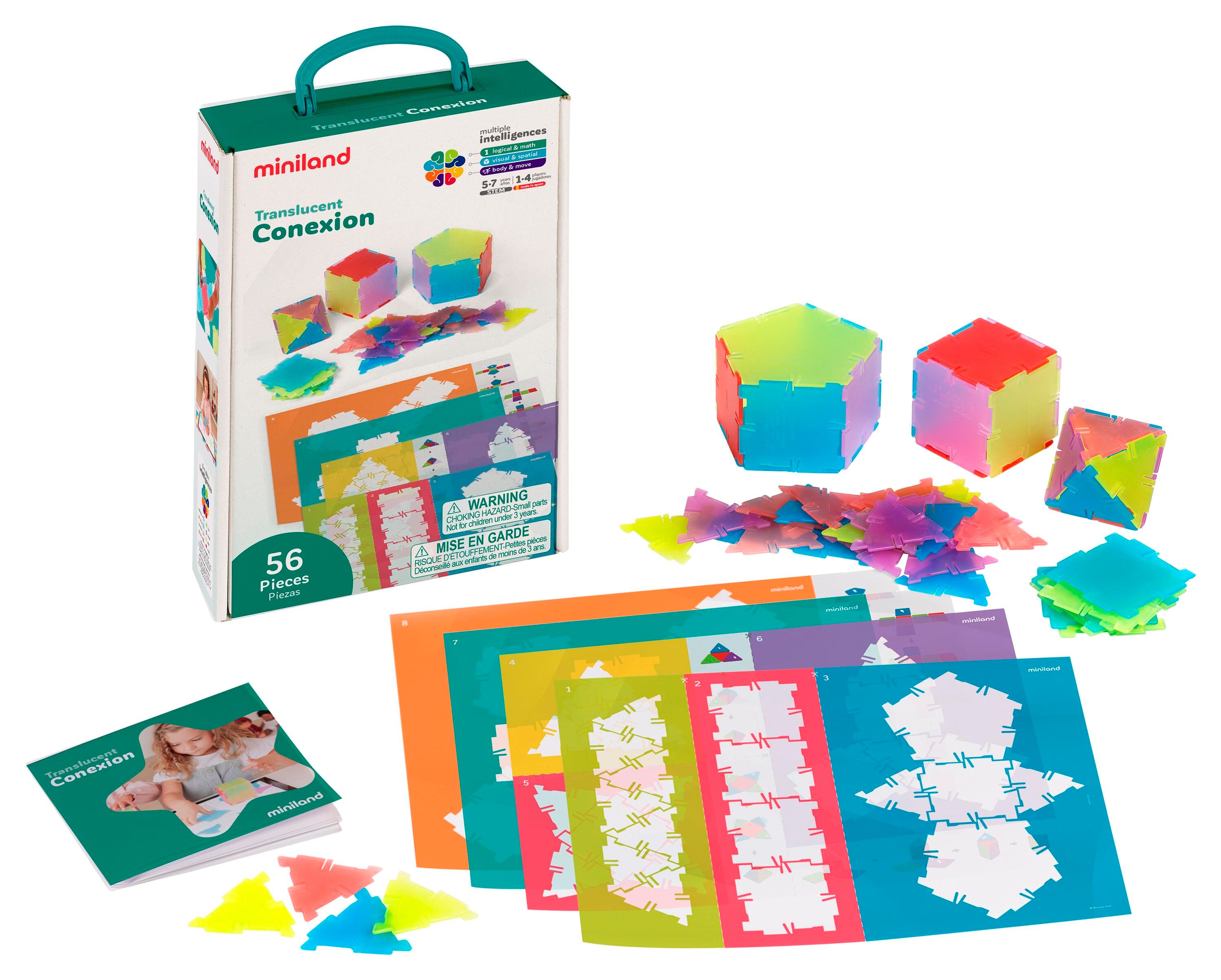 A set of 56 2D polygons, which fit together to build polyhedrons and 3D volumetric shapes. It comes with transparent activity sheets with increasing difficulty levels, that can be used on light tables. It also includes an instructions booklet that focuses on hands-on mathematical learning in the classroom.