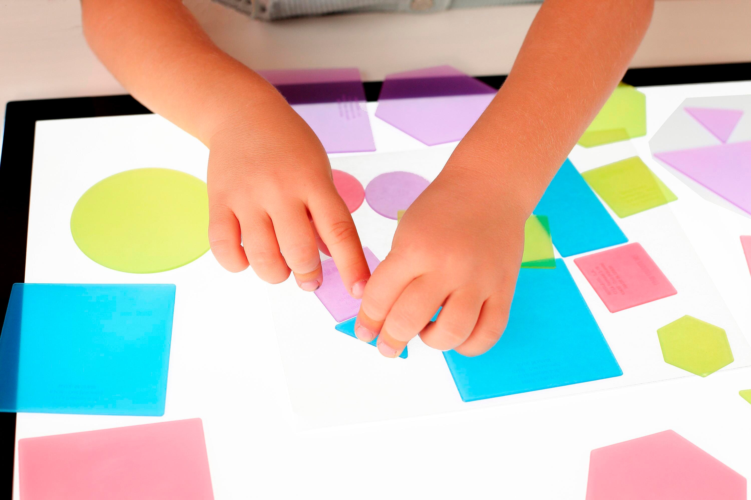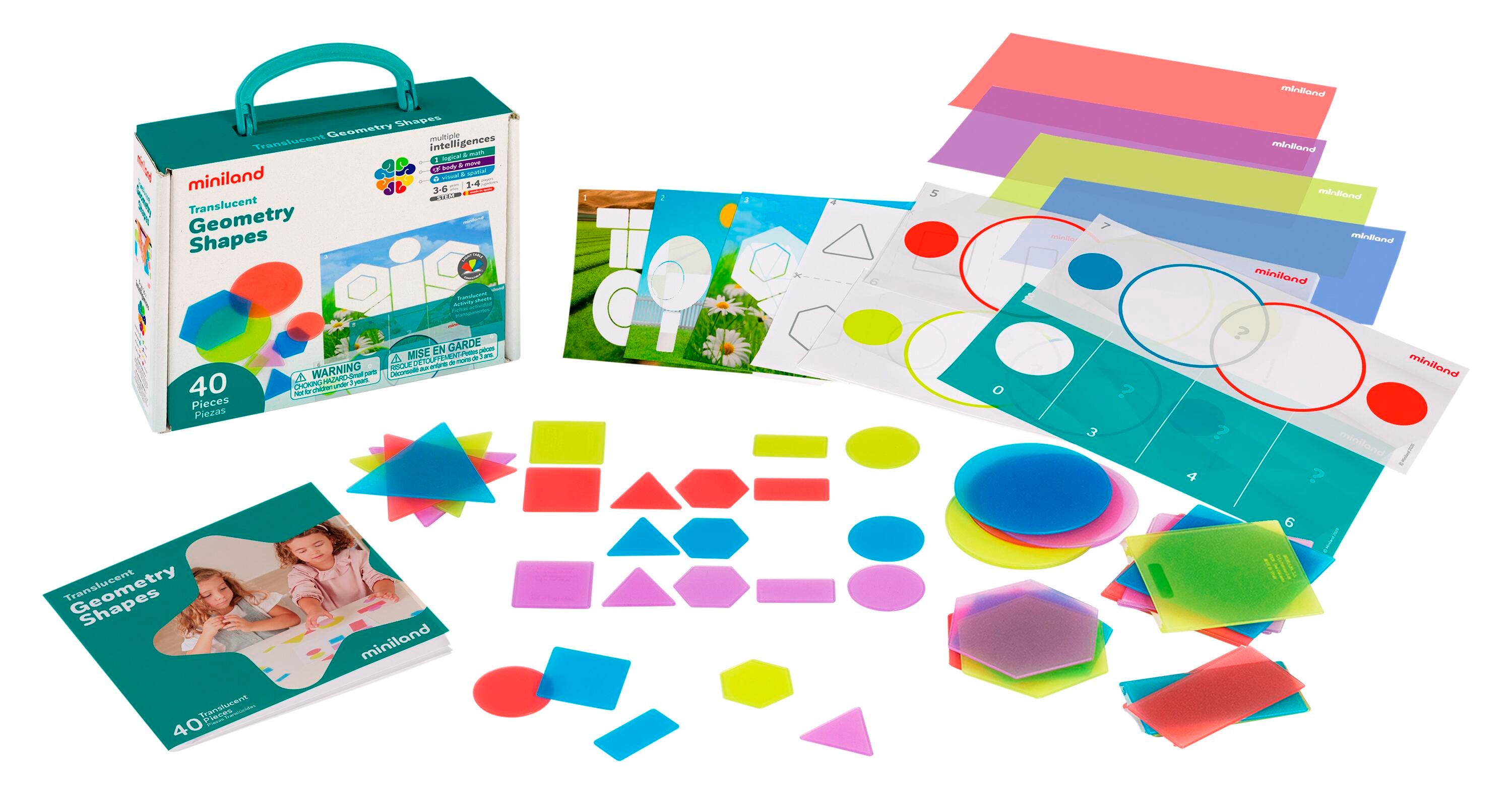 This set of 40 geometric shapes made in translucent plastic helps students get familiar with the world of geometry at a very young age. This educational resource can be used on light tables and it comes with transparent activity sheets with increasing difficulty levels and an instructions booklet with game ideas.Features
