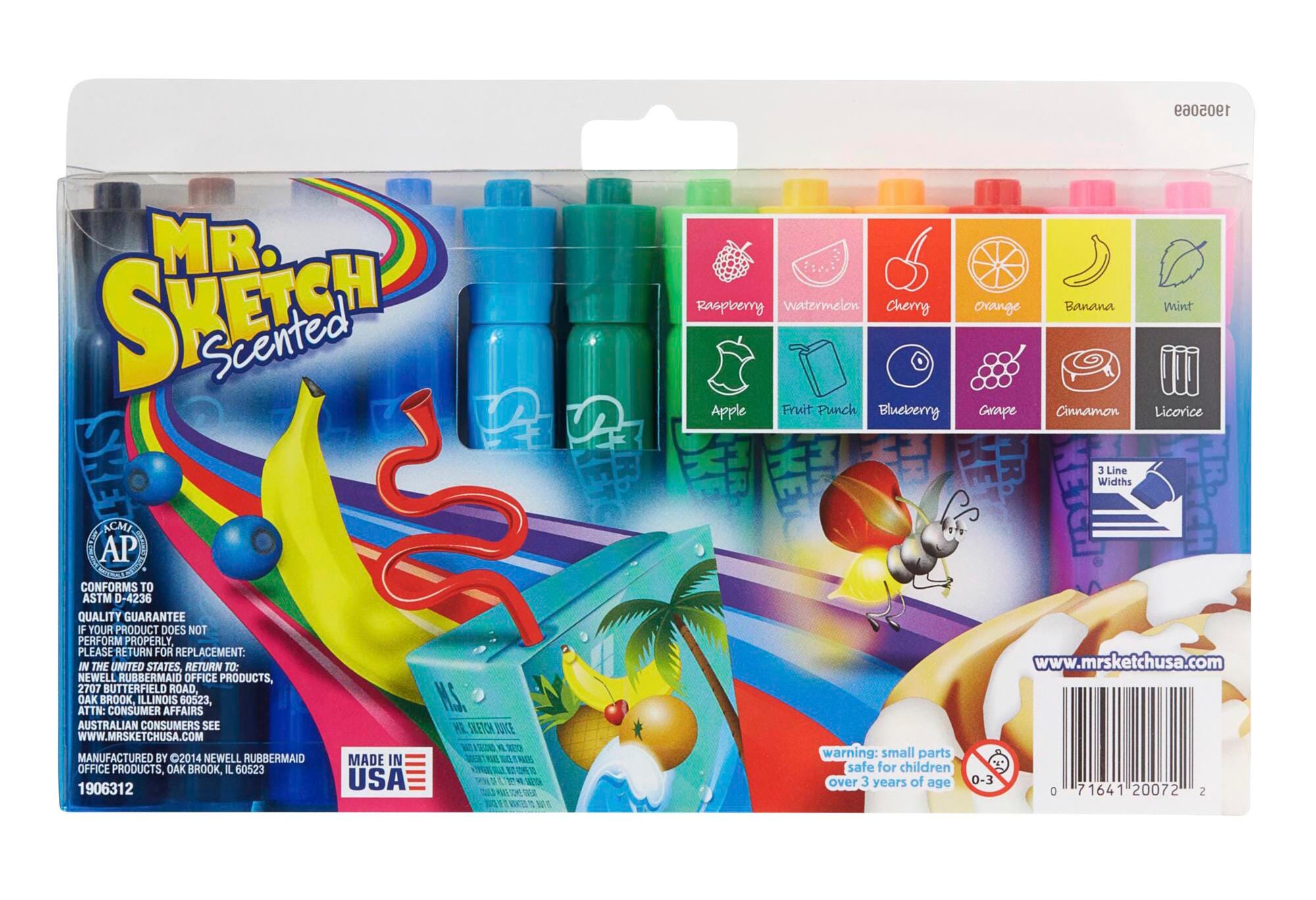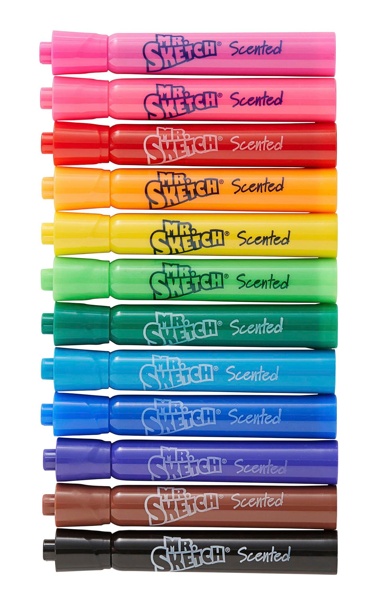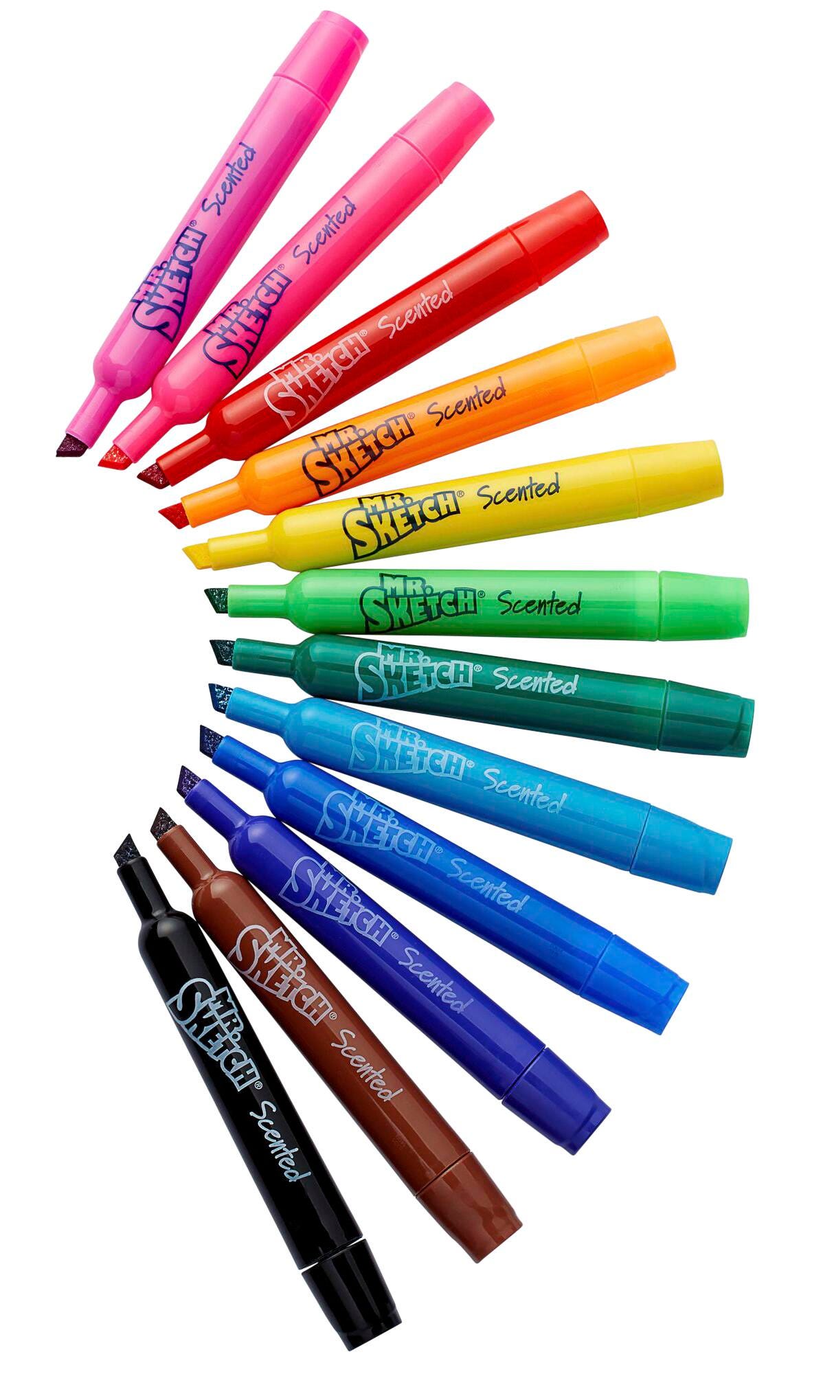 Mr. Sketch Premium Assorted Scented Markers are great for adding a dash of scented fun to creative work or projects. These child-friendly markers do not penetrate through paper and can be washed from hands or clothing. Each non-toxic marker sports a durable chisel tip and an exciting scent that will last on paper. Markers measure 4-7/8 L x 3/4 W inches each.