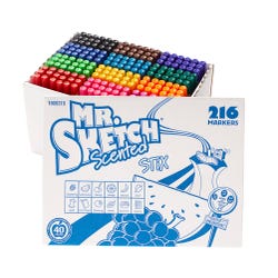 The Mr Sketch Premium Scented Stix Watercolor Markers take coloring, drawing, and art projects to the next level! These vibrant markers are water-soluble and do not bleed. The easy-to-set-up box contains 18 sticks in each of 12 brilliant colors and is perfect for any classroom. The nontoxic Stix markers feature a sturdy fine tip that's great for drawing and writing. The cost-effective school pack comes in a durable organizer box and includes a total of 216 markersFeatures
