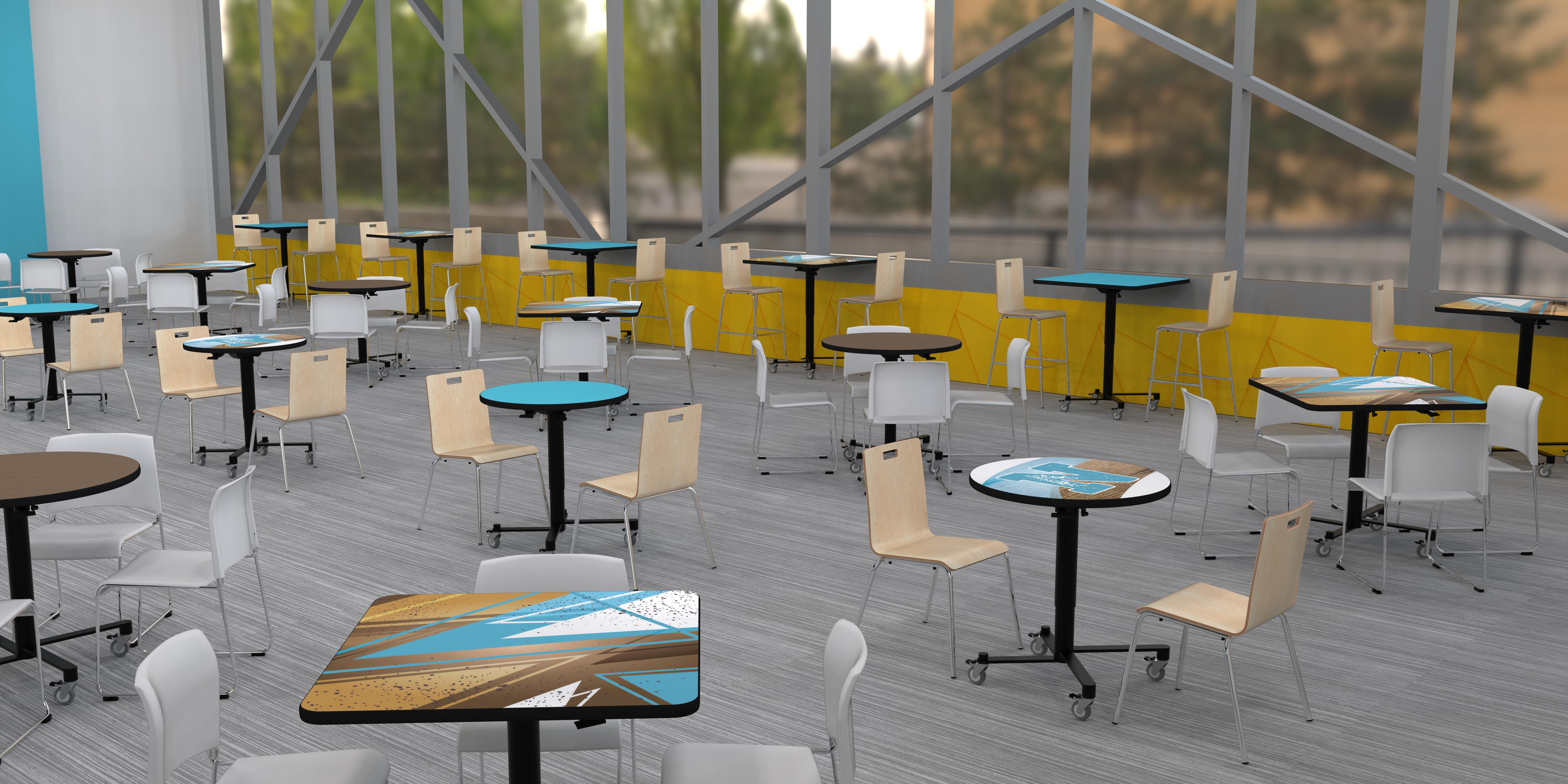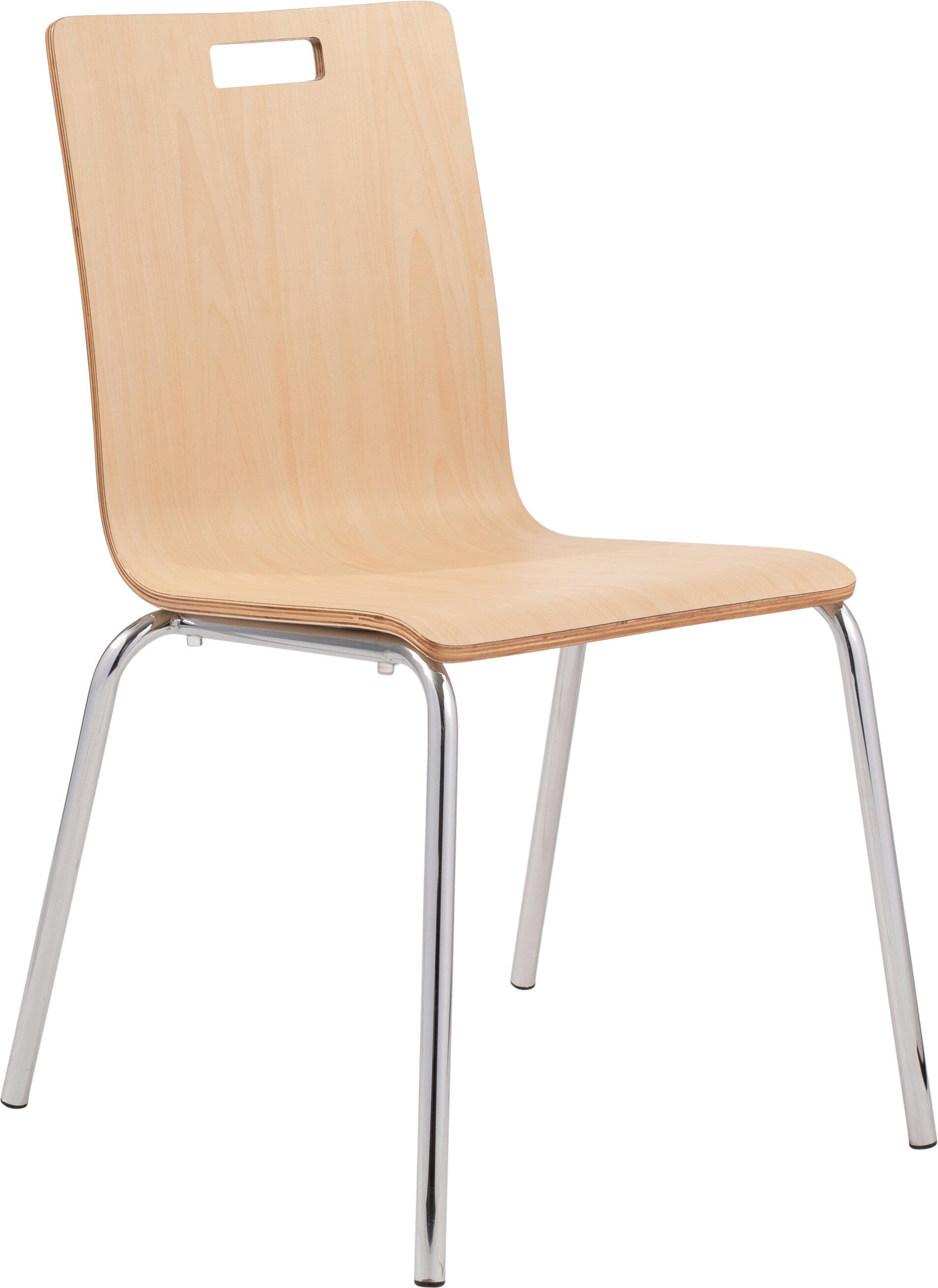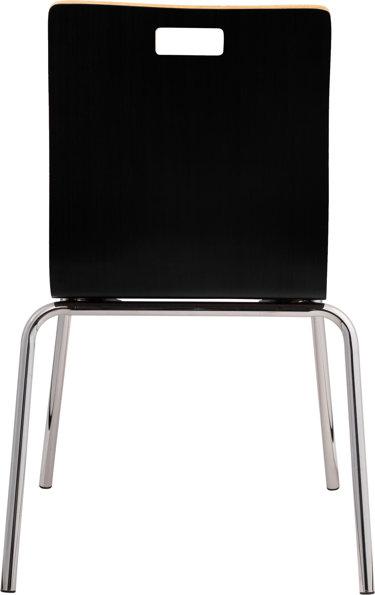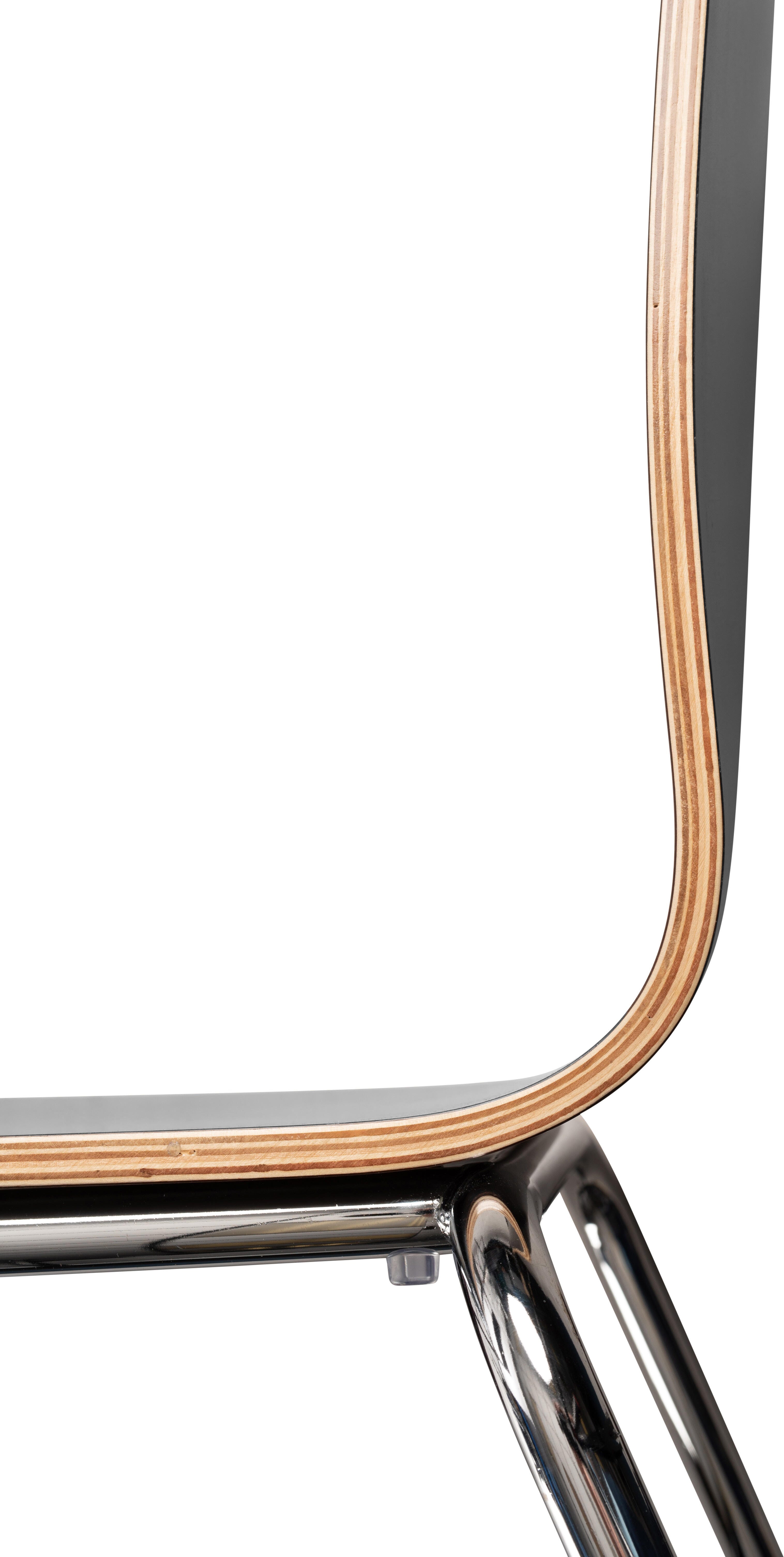 The Bushwick Café Chair and Barstool from NPS features an 8-layer bent plywood seat with a high-end HPL finish, legs made of 7/8 in. 16 Gauge chrome tubing, and non-marring, plastic glides. Modern handle for easy movement and storage. The plywood core is made with poplar wood and eucalyptus wood, and the weight capacity exceeds 500 lbs.