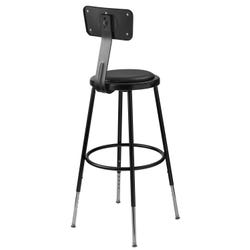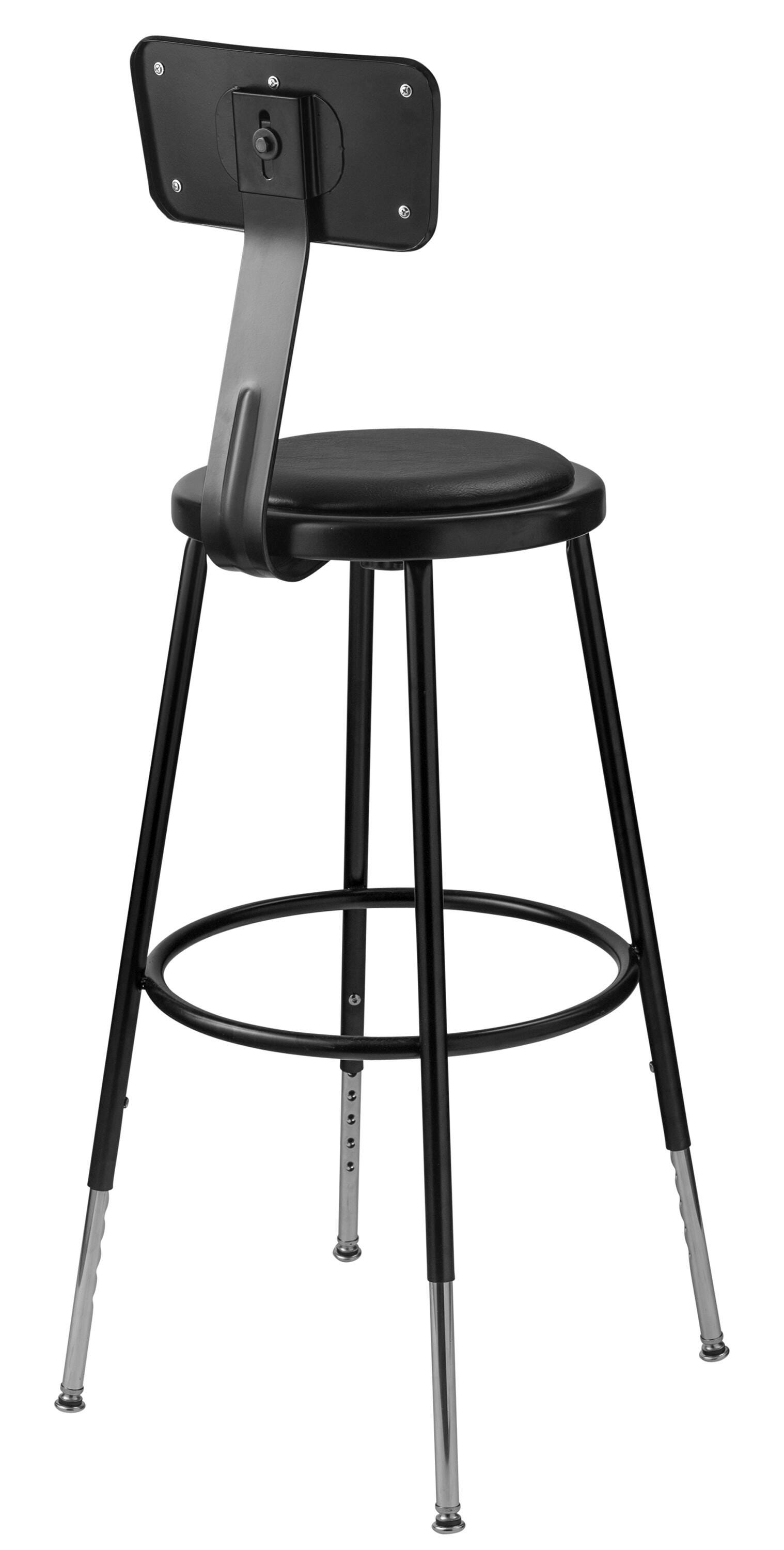 National Public Seating Height Adjustable Heavy Duty Vinyl Padded Steel Stool With Backrest, 25-33 Inches, Black