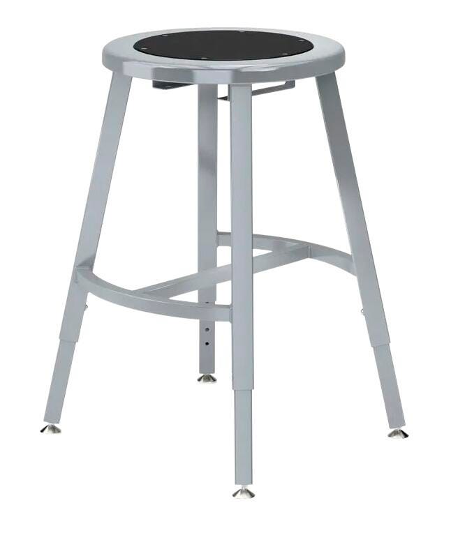 National Public Seating Titan Stool, Black Steel Seat, 18-26 Inch Adjustable Height, Gray Frame