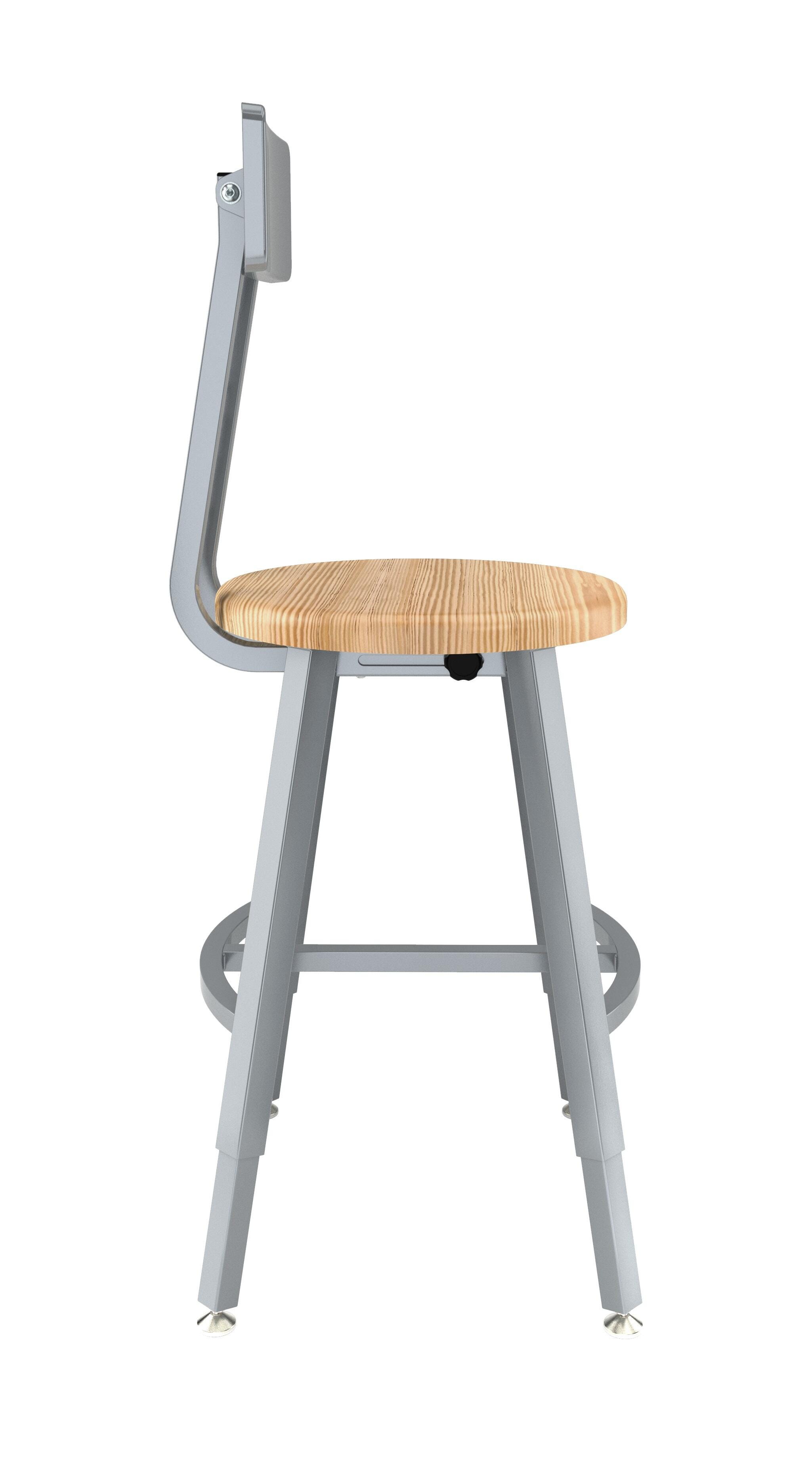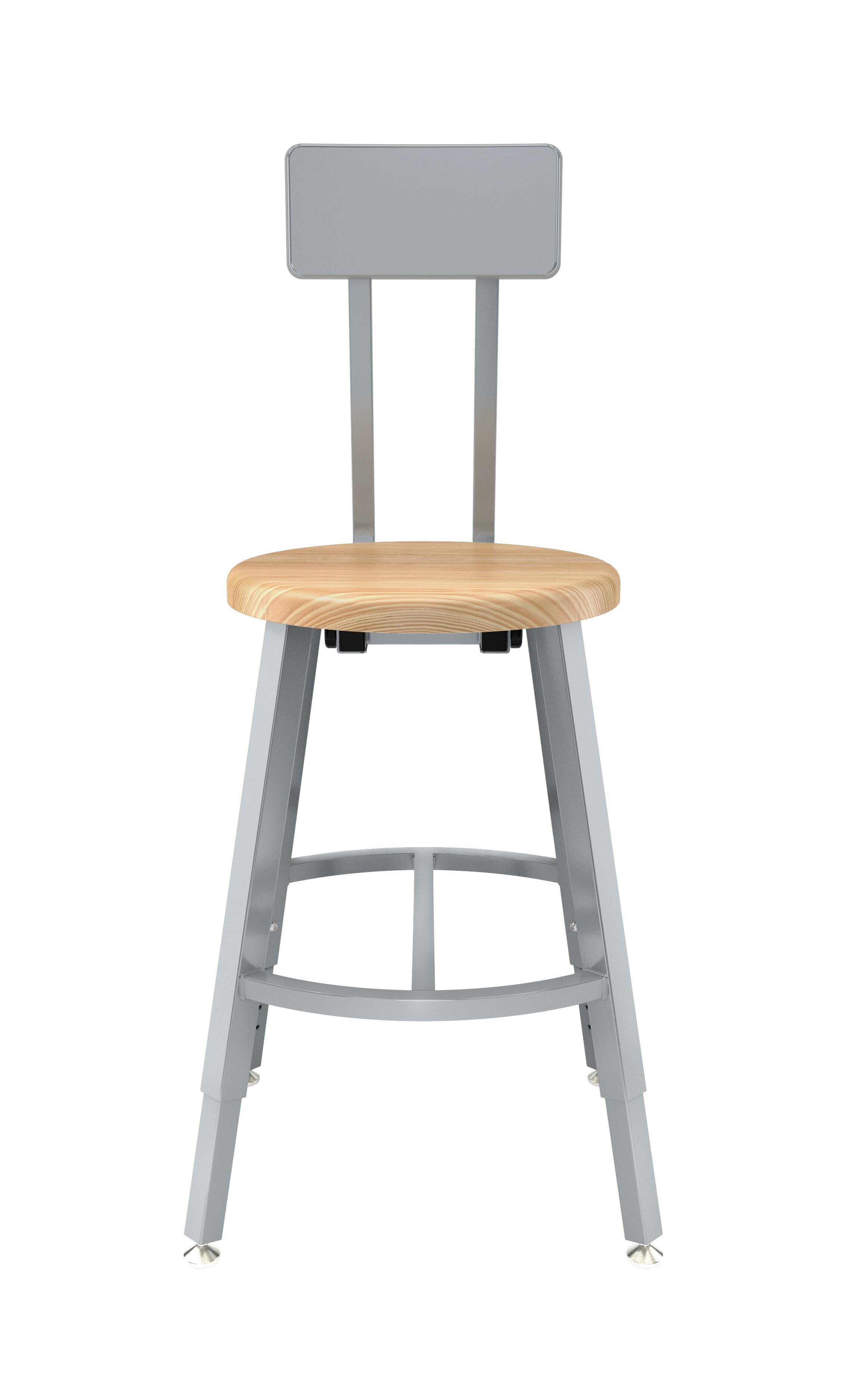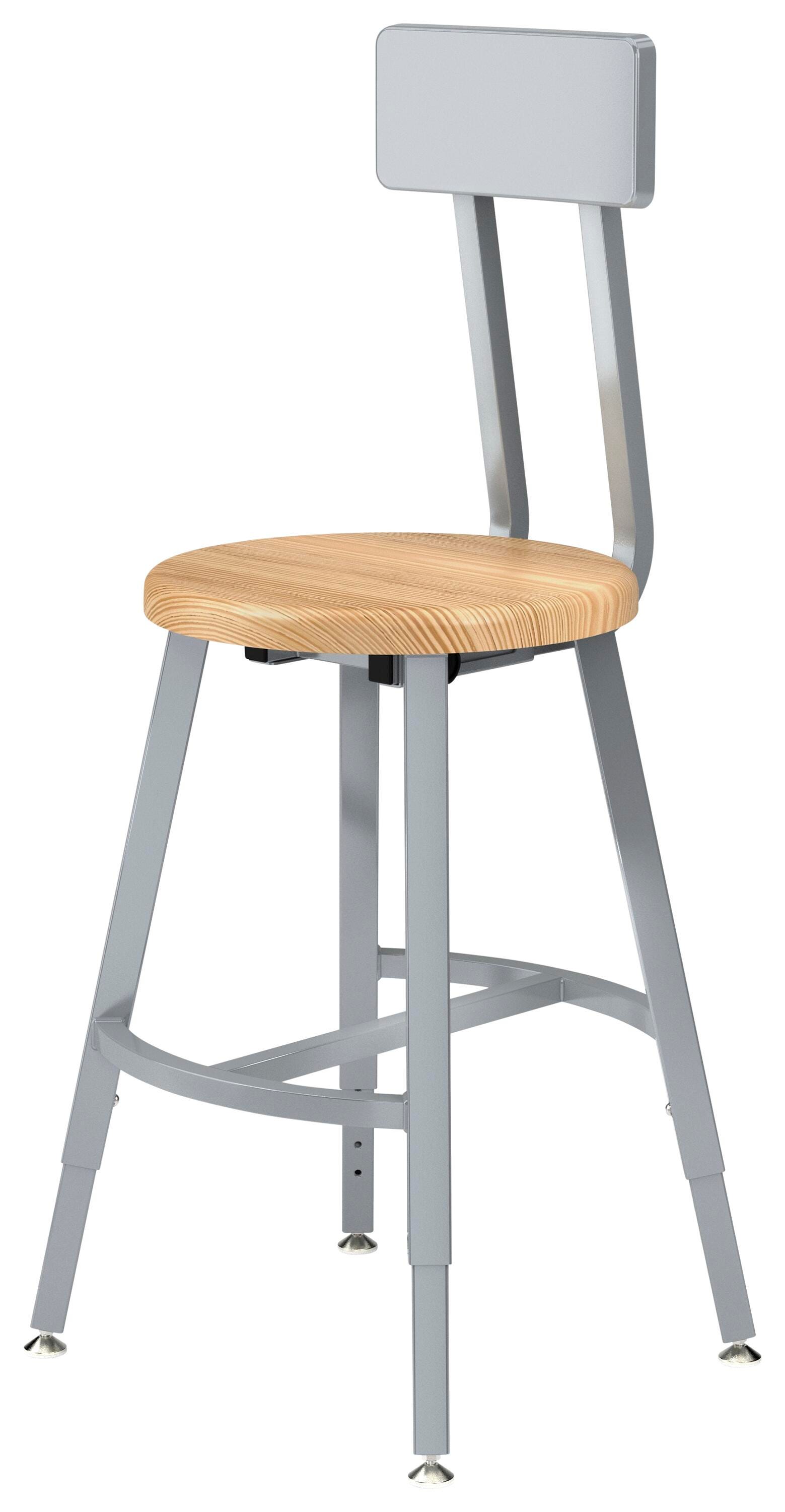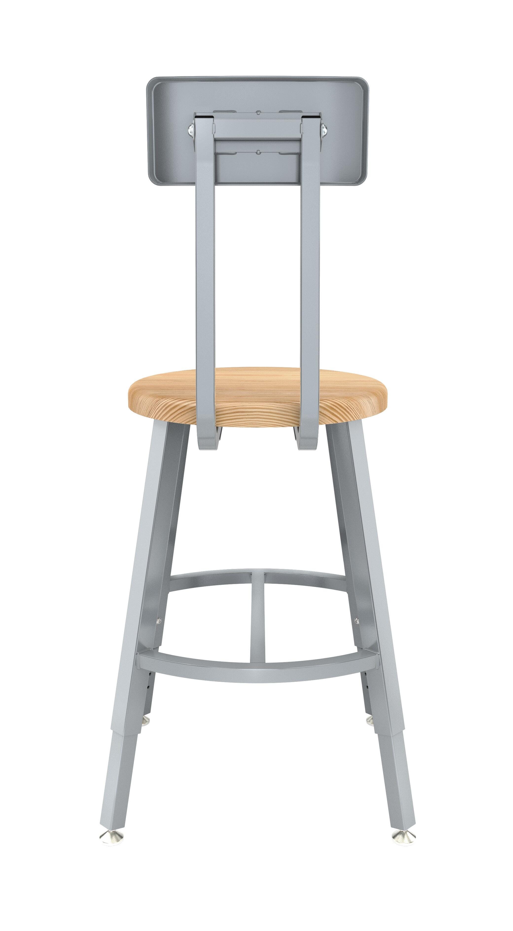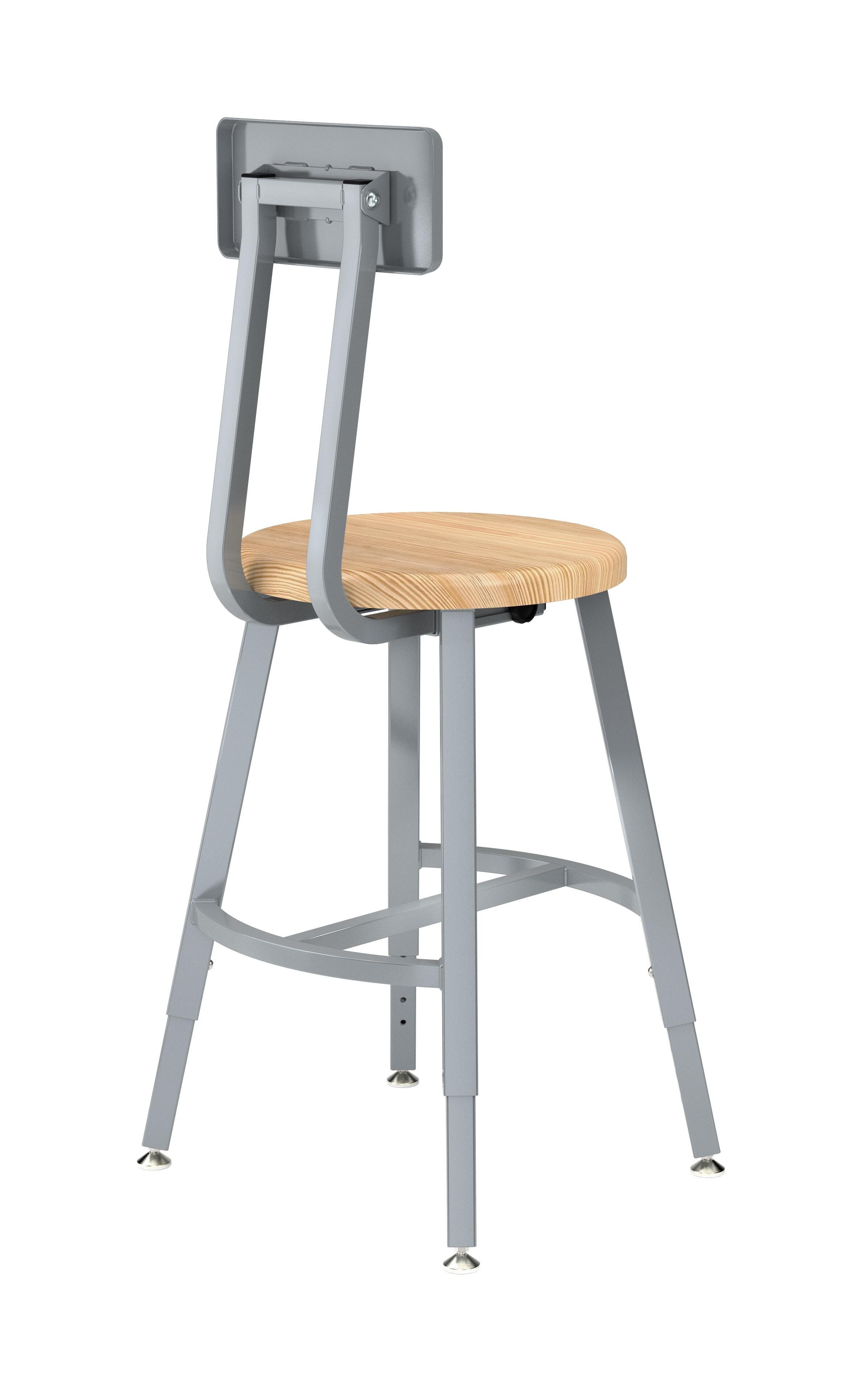 National Public Seating Titan Stool, Wood Seat, 18-26 Inch Adjustable Height, Backrest, Gray Frame