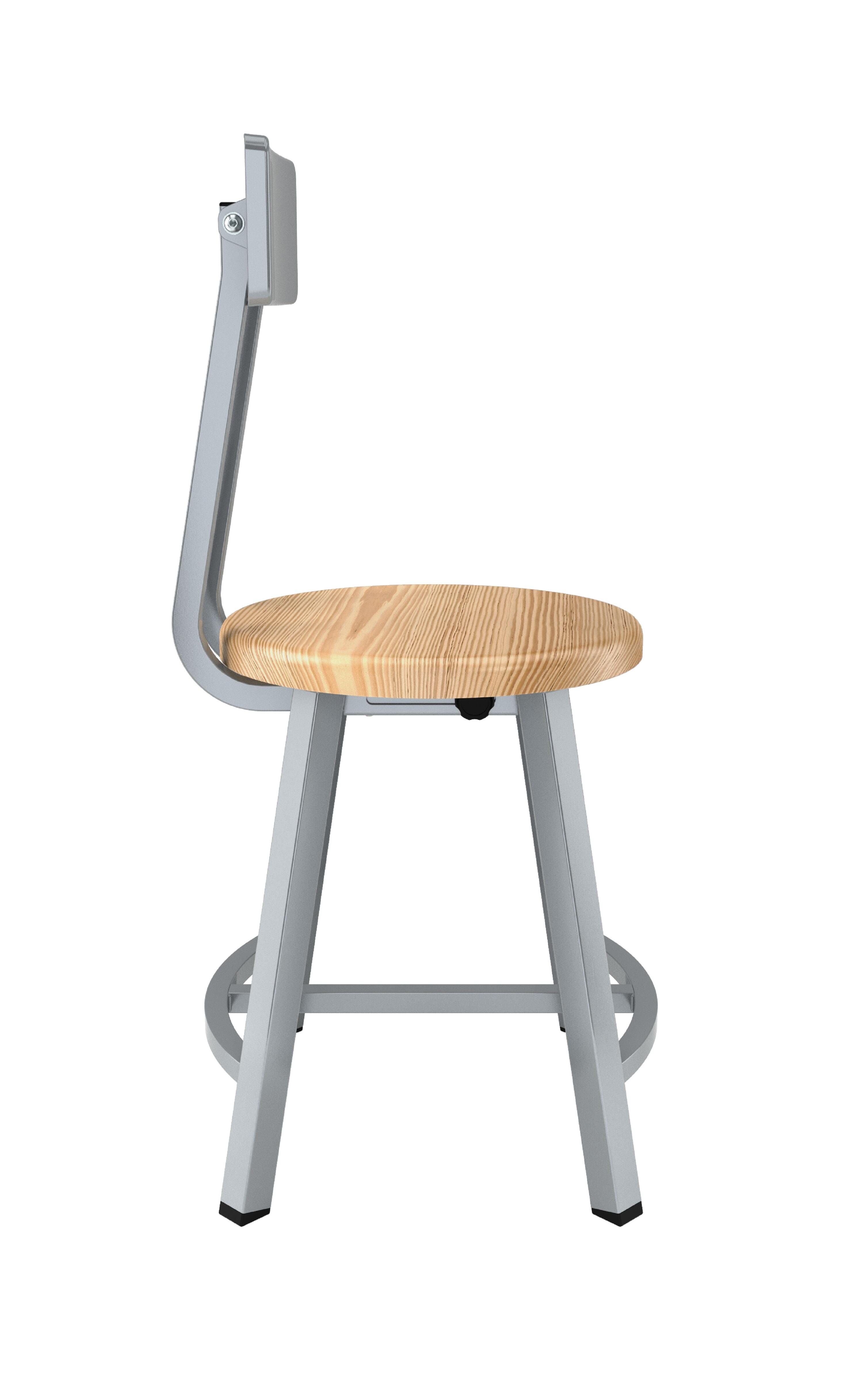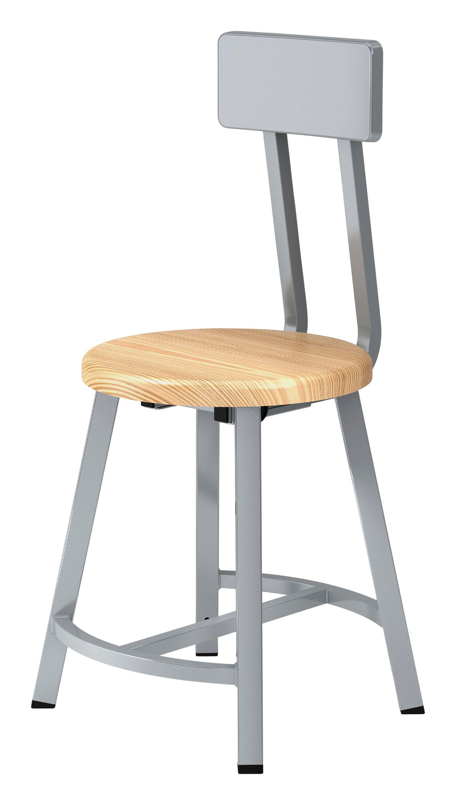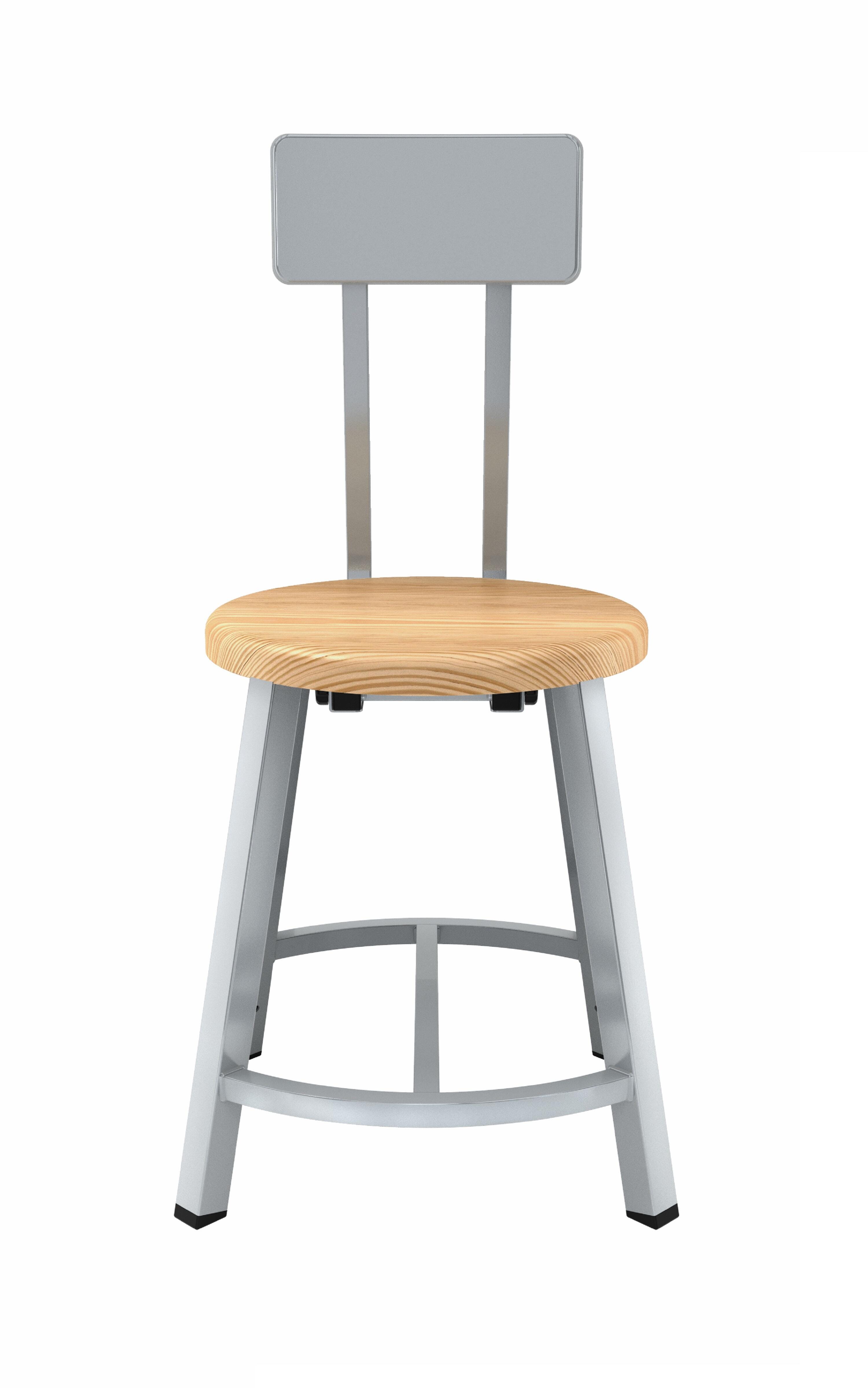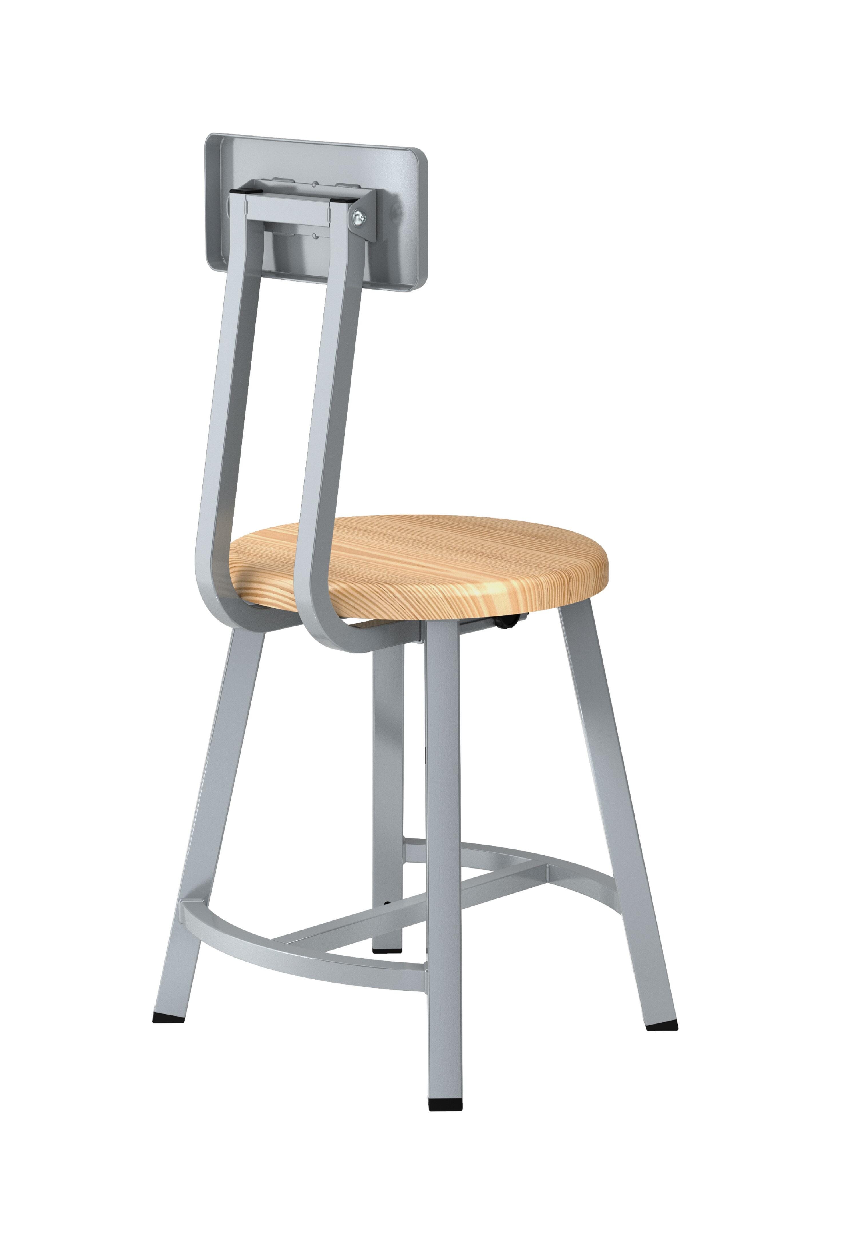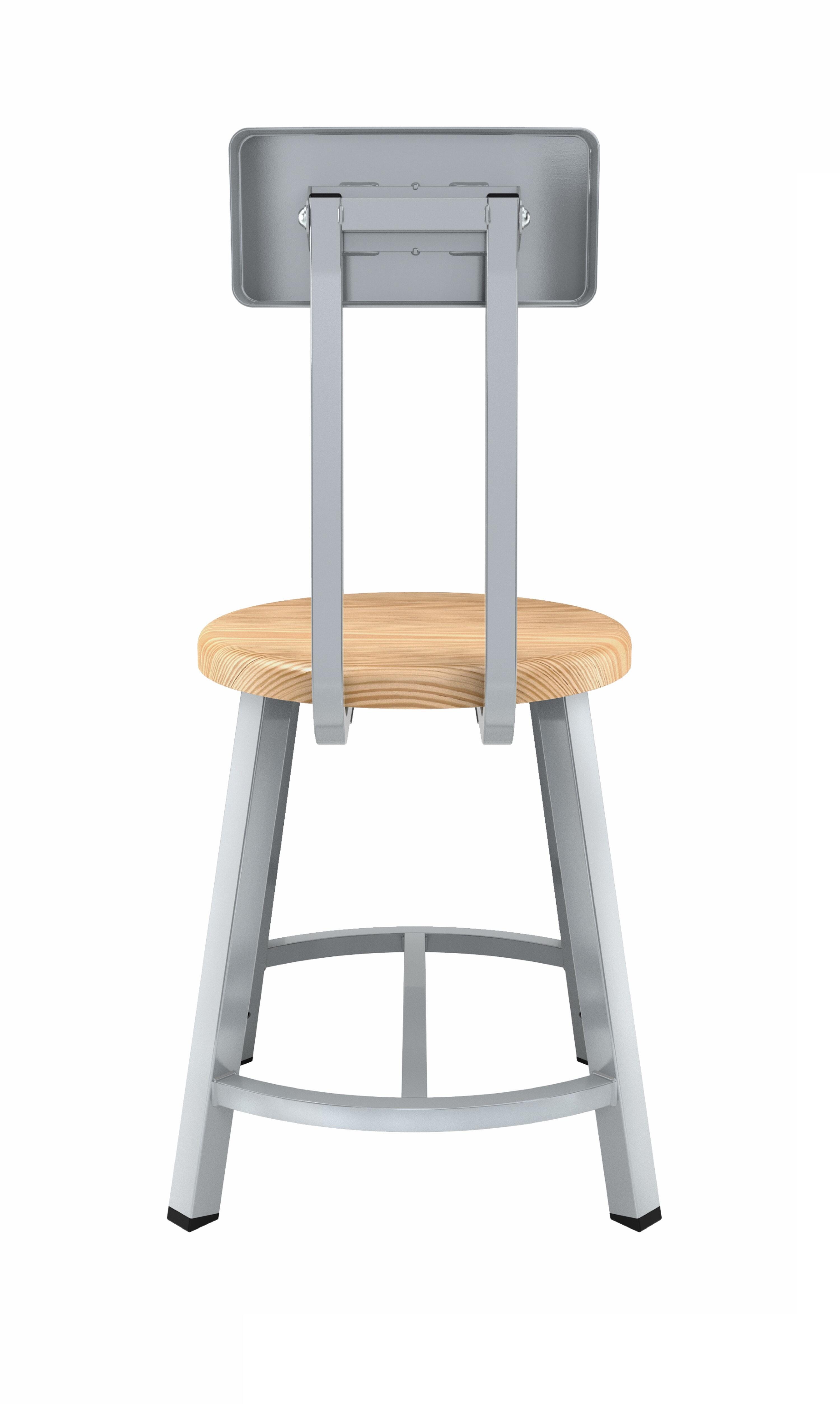 National Public Seating Titan Stool, Wood Seat, 18 Inch Fixed Height, Beckrest, Gray Frame