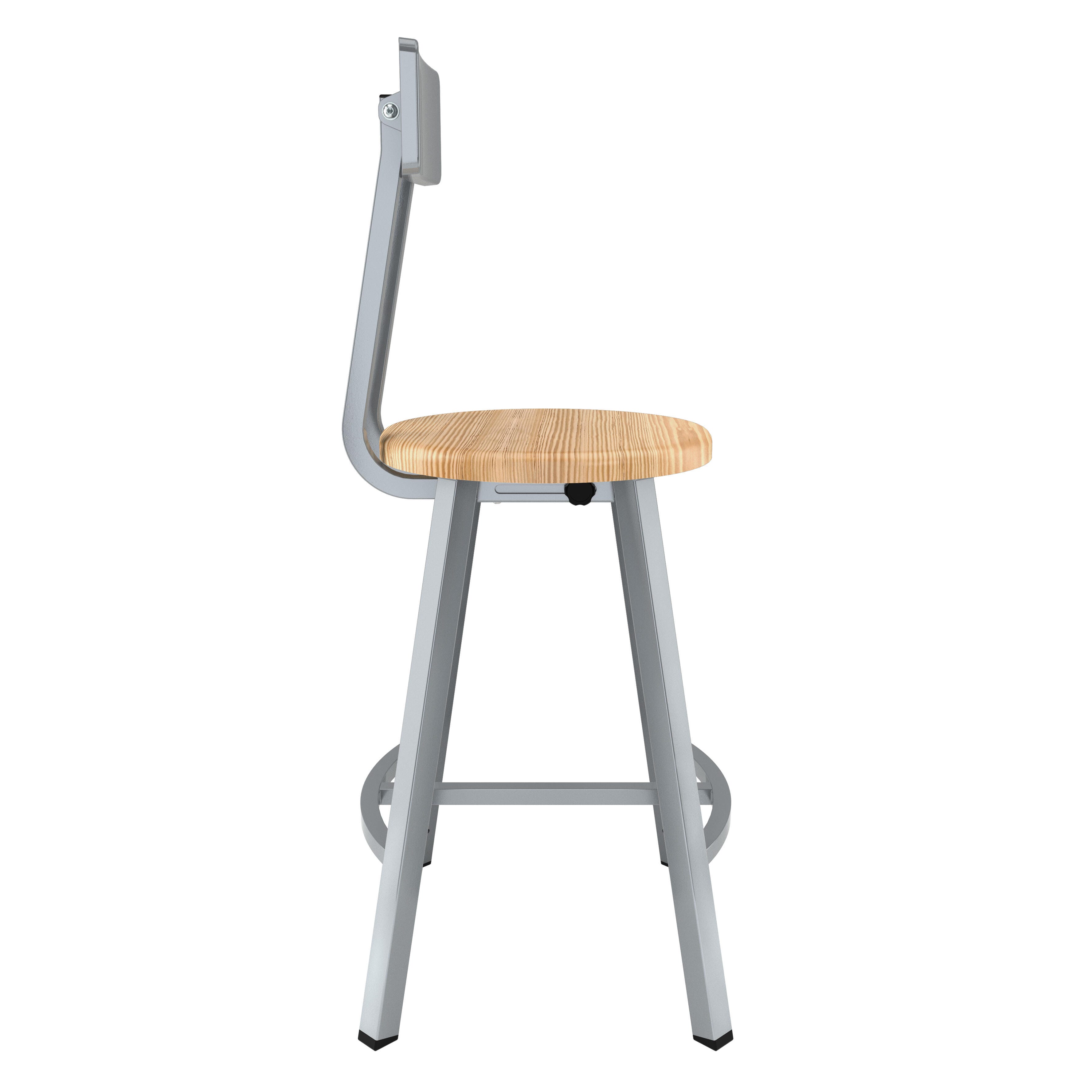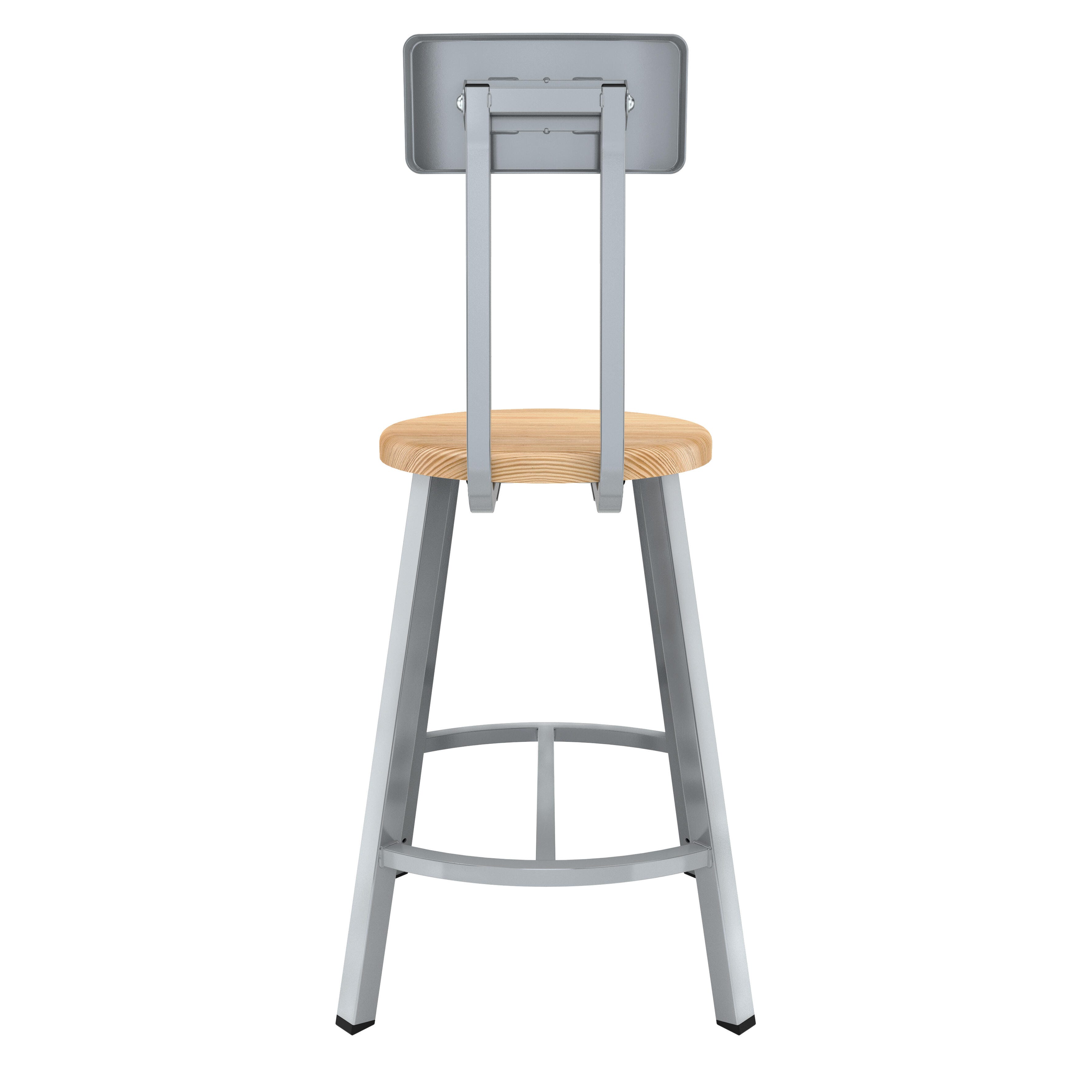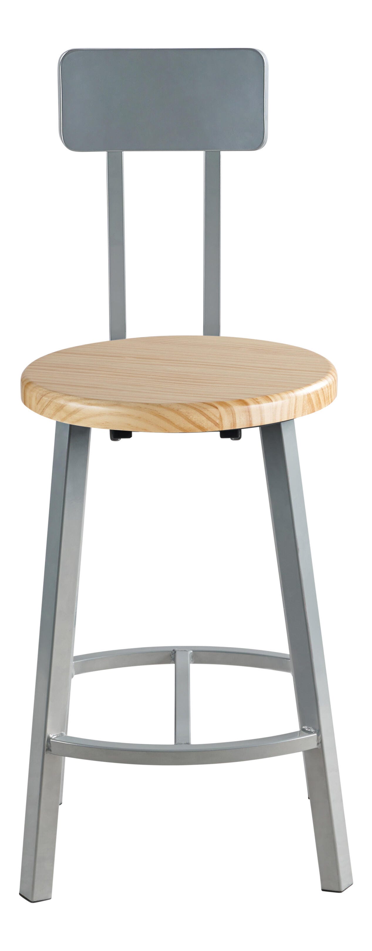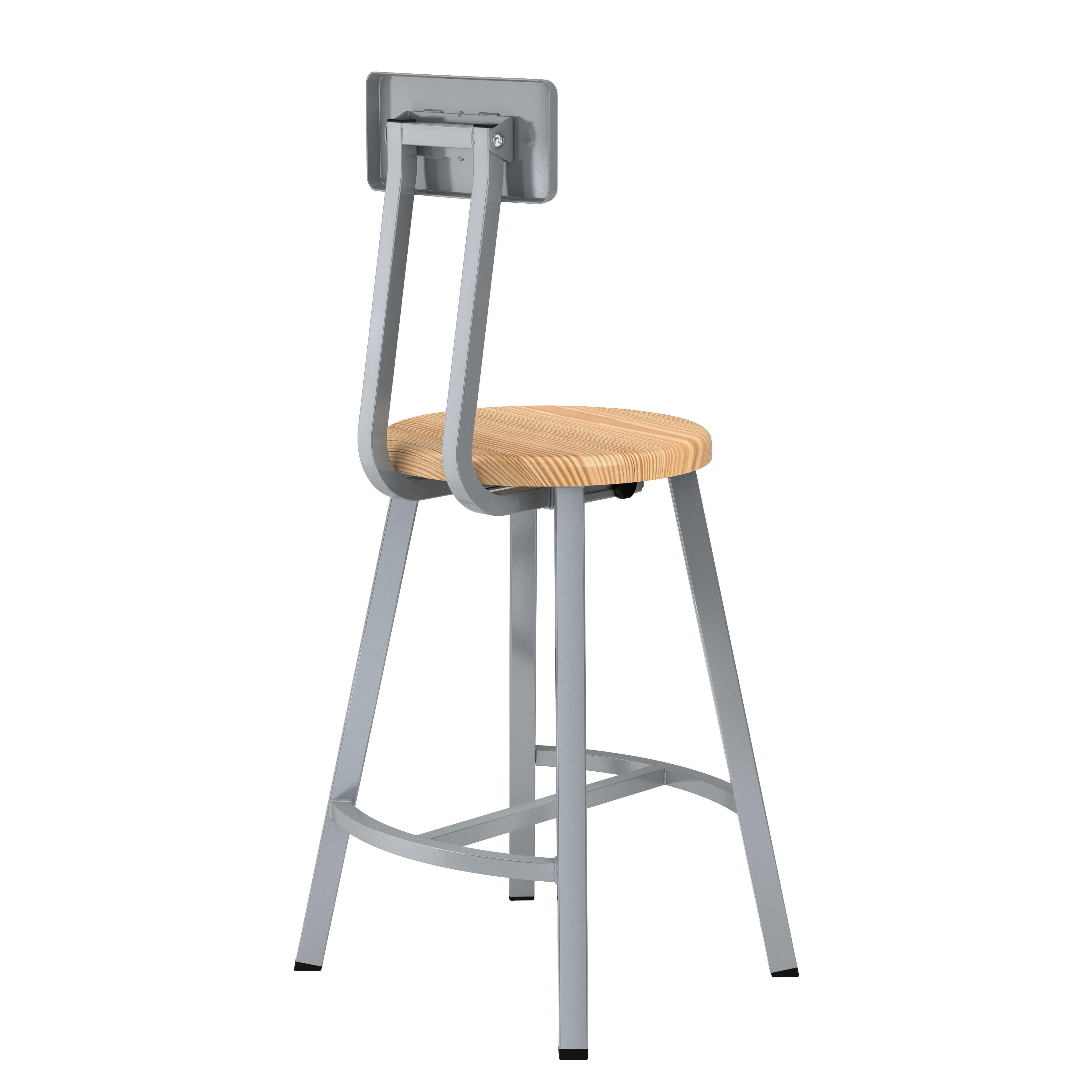 National Public Seating Titan Stool, Wood Seat, 24 Inch Fixed Height, Backrest, Gray Frame