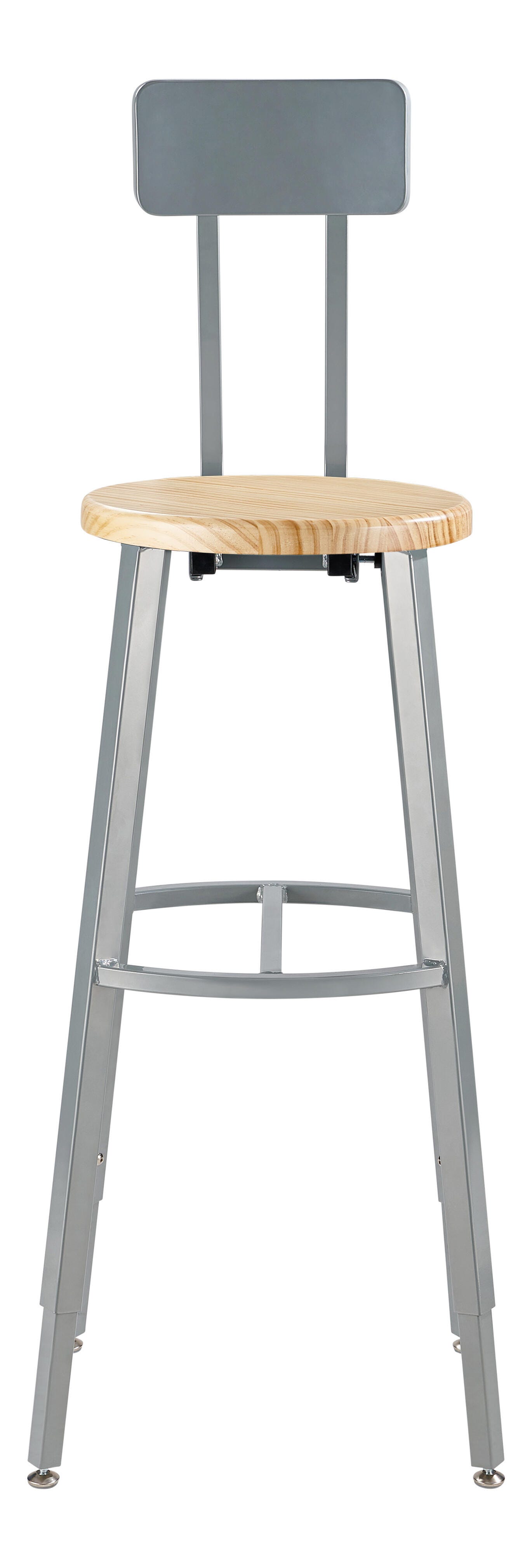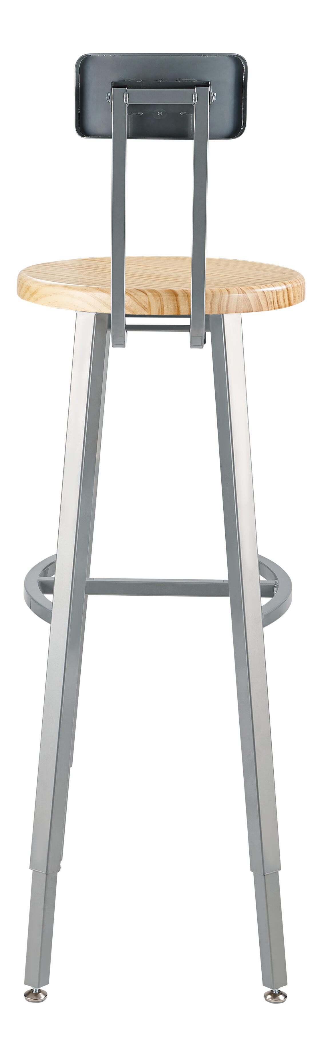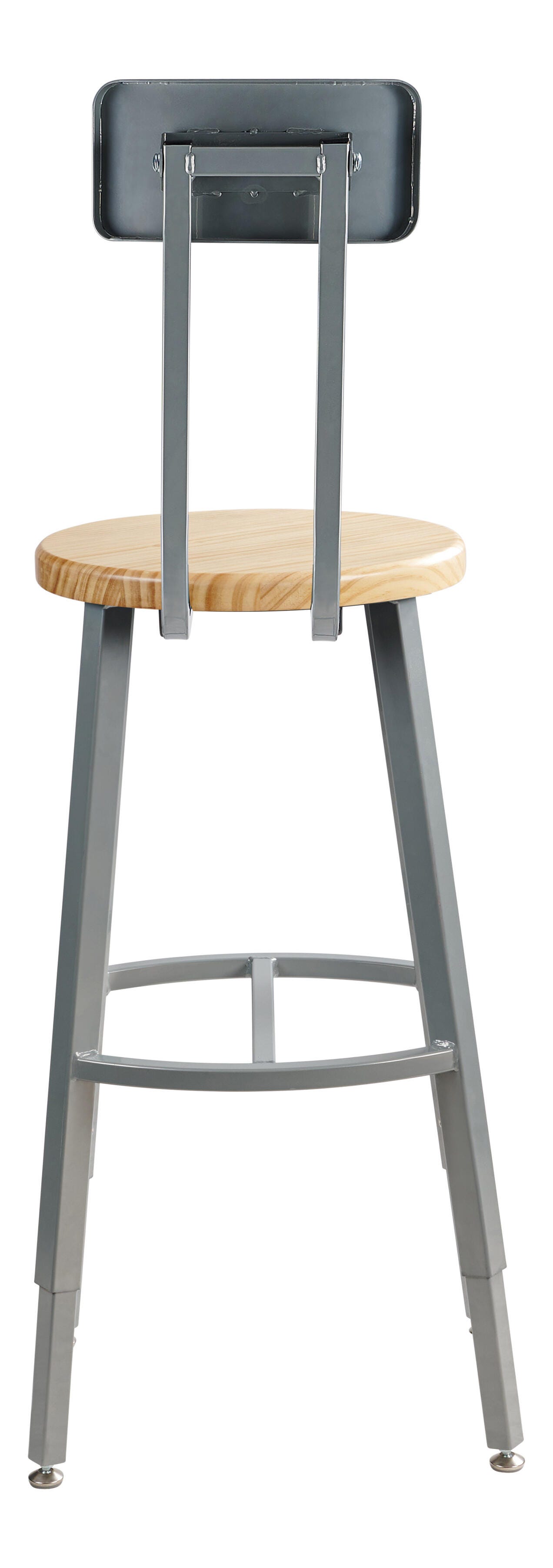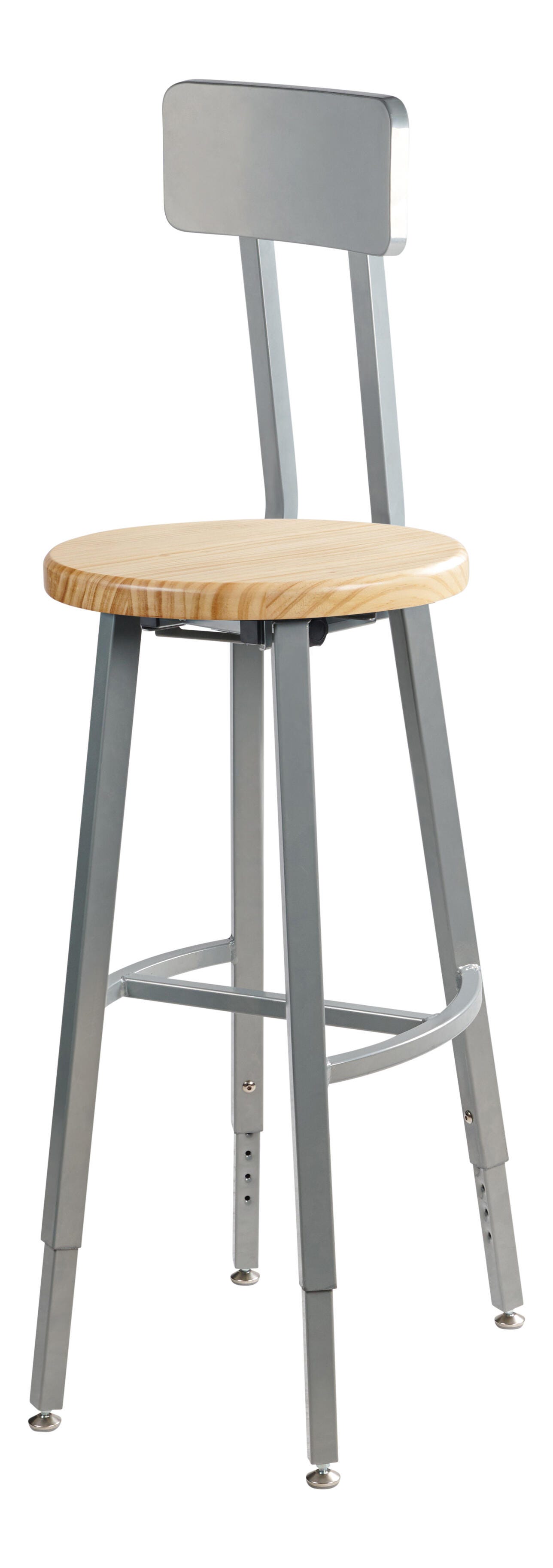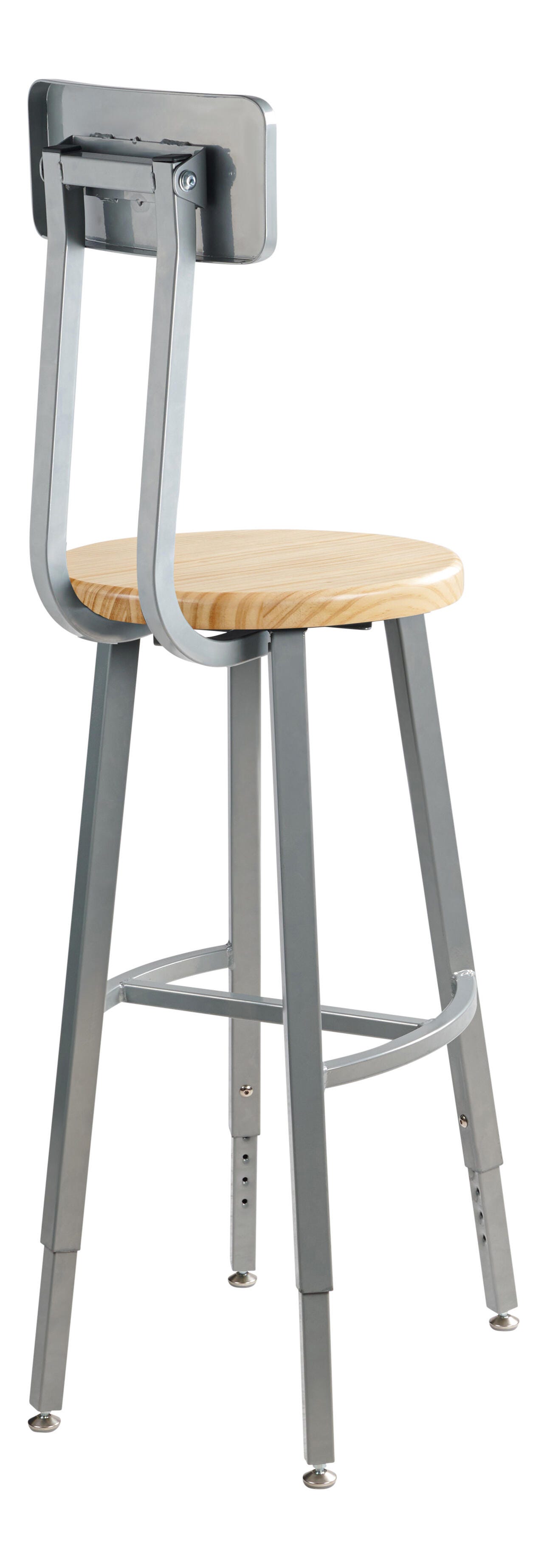 National Public Seating Titan Stool, Wood Seat, 30-38 Inch Adjustable Height, Backrest, Gray Frame
