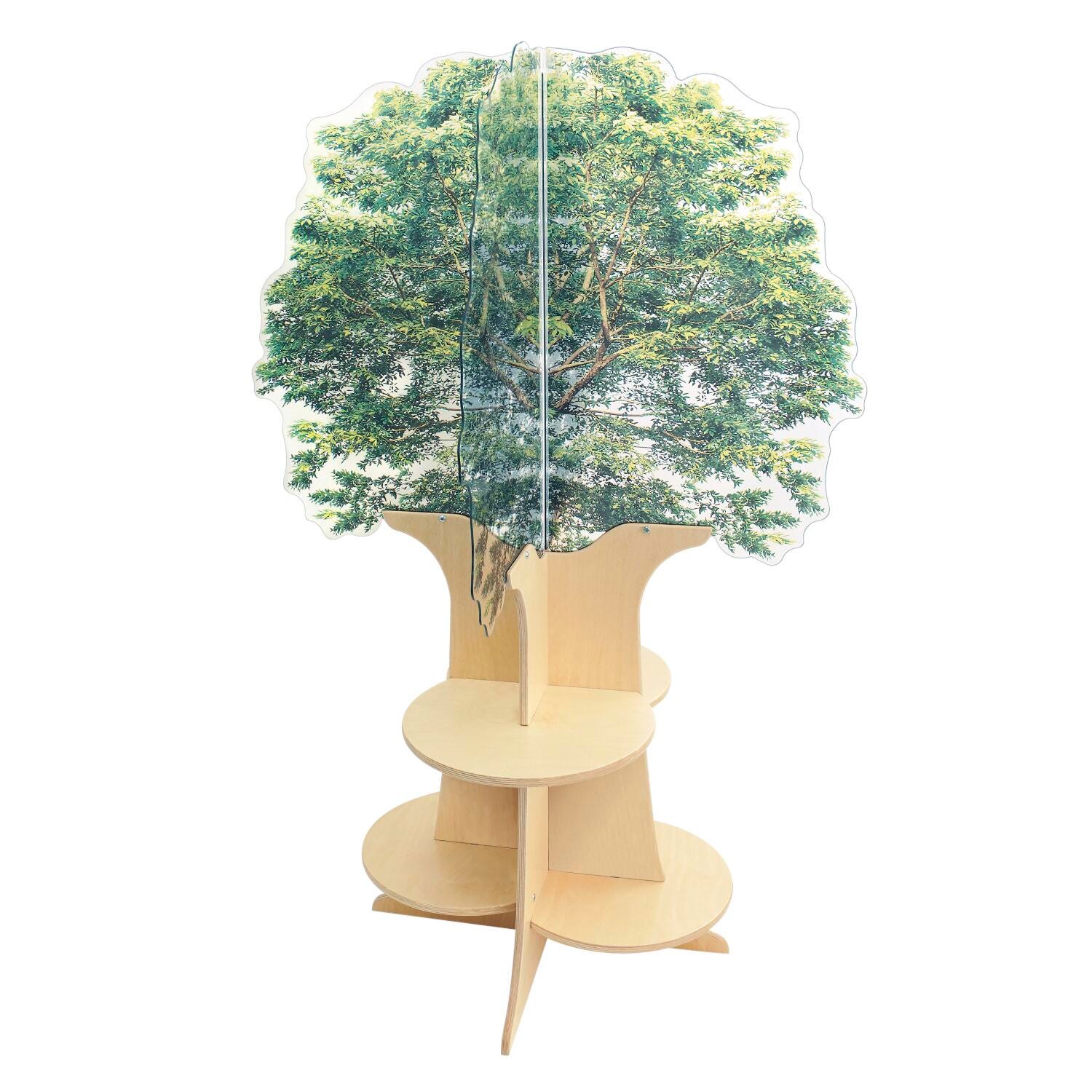 Enticing realism that spurs literacy! Children are drawn by the engaging design to select a book, sit and read under our beautiful tree book shelf. The realistic tree image is printed on clear acrylic panels that provide important visibility of children for adult supervision. The shelves in the sturdy, shaped tree trunk are reversible; one surface is smooth and the opposite surface includes a slotted groove that helps keep books upright. Provides a striking design accent to any Early Learning environment and coordinates seamlessly with all other pieces in our award-winning Nature View Collection [each piece sold separately] to create an engaging biophilia-inspired Early Learning landscape. Easy assembly.