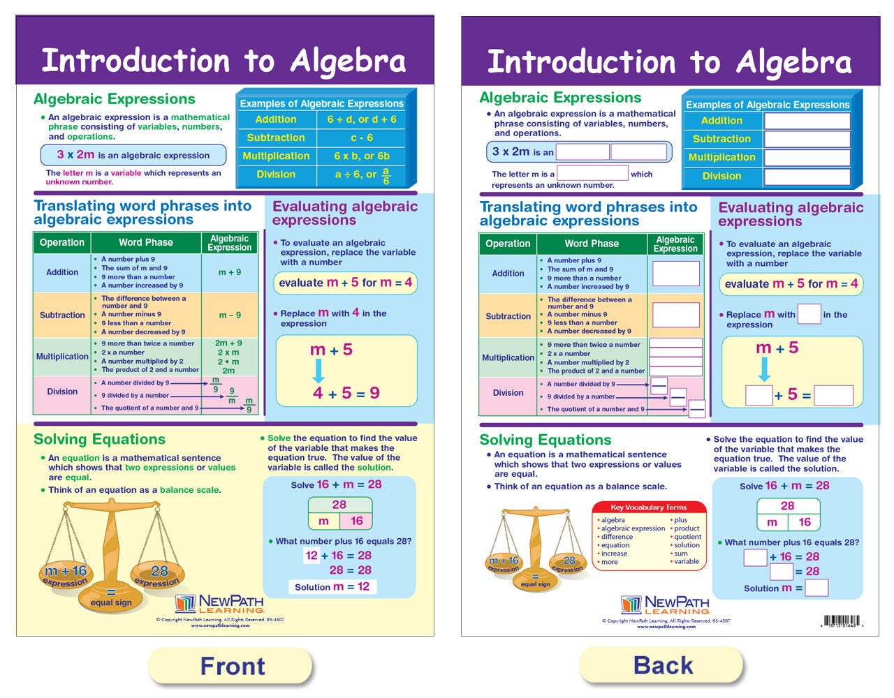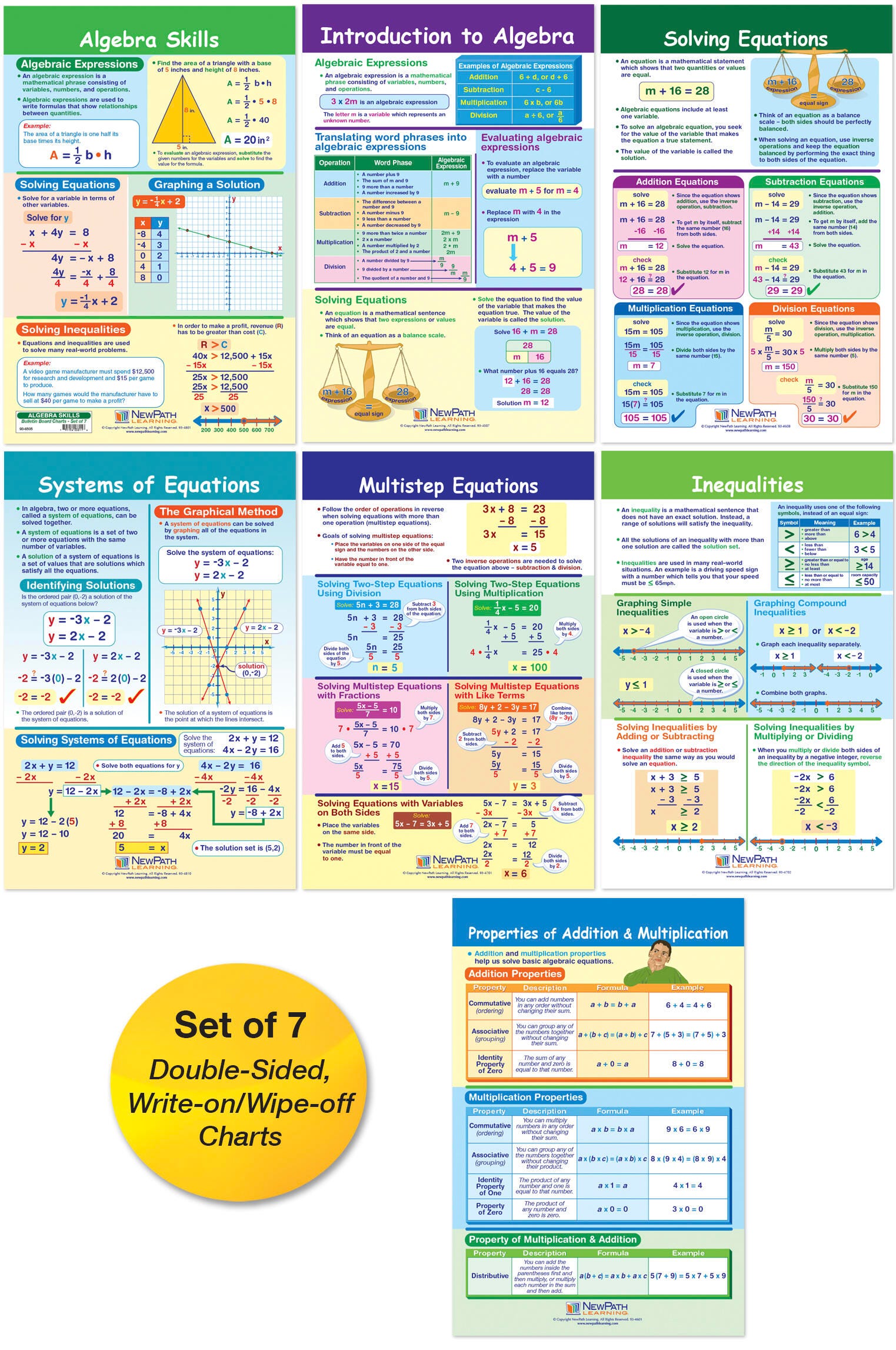 NewPath Learning Algebra Skills Bulletin Board Charts, Grades 6 to 8, Set of 7