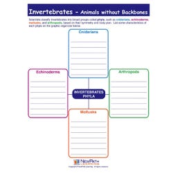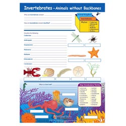 Complete, easy-to-use and engaging, the Invertebrates - Animals without Backbones Learning Center is ideal for the instruction and review of this key, standards-based concept. Designed for either teacher-directed instruction or independent use by groups of 2 to 4 students, the Learning Center provides complete, leveled coverage of this curriculum-aligned topic, making it perfect for differentiated instruction. To use, the students first work individually or in pairs using the 4 laminated Visual Learning Guides provided on the topic. The guide provides a graphic, easy-to-follow overview of the concept; “Write-On/Wipe-Off” activities and graphic organizers; and a set of guiding, assessment review questions. They then form in a group to play the Curriculum Mastery Game included for cooperative or competitive review and reinforcement of the concepts. Packaged in a durable pouch, the Learning Center is a ready-to-use resource for the classroom, after school and summer school programs or at home for test preparation, practice and review! Grades 3 - 5.Features