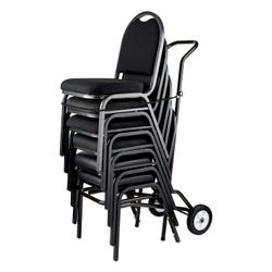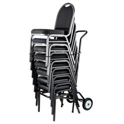 NPS Chair Dolly features a hooked-on bungee cord to secure the chairs for added safety. Welded tubular steel frame and a dark brown powder coat finish. Dolly with 7-1/2 inch rubber wheels transports twelve 8 inch stack chairs with ease. Chairs not included.Includes: 1 Chair Dolly