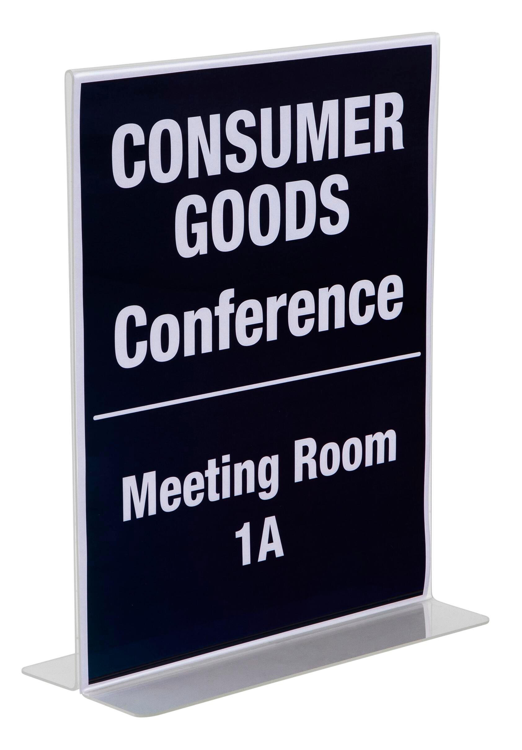 The Nu-Dell T-Shape Sign Holder is perfect for displaying signs, pictures, notices and more. Double-sided sign holder forms its own stand with a T-shape design. Table or countertop friendly, it works vertically and horizontally.