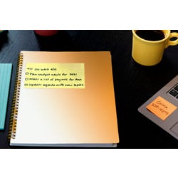 Post-it Notes come with a unique adhesive, which keeps your note in place, yet removes as well as repositions easily. Great for short and quick reminders that cut through the clutter.Features
