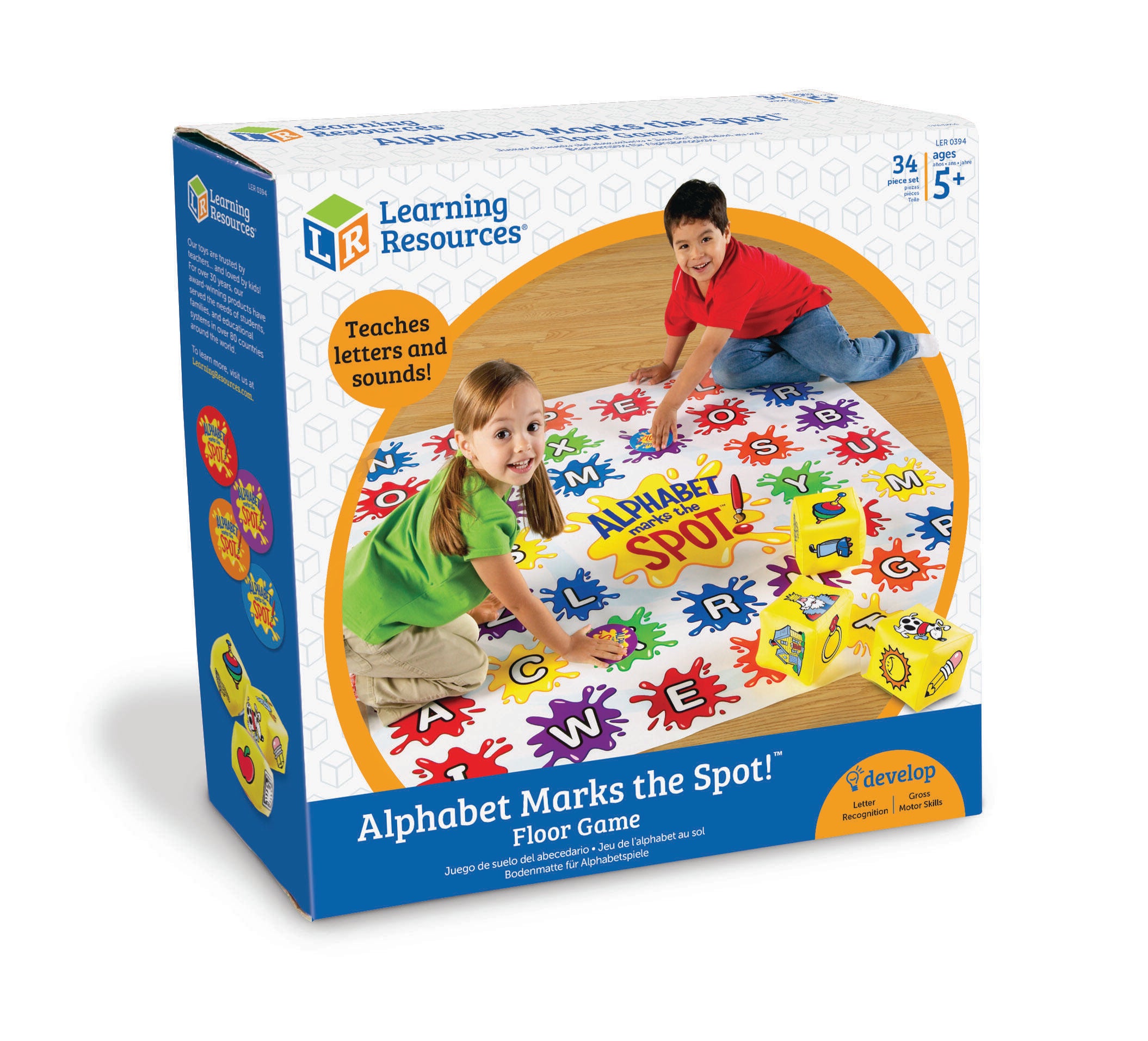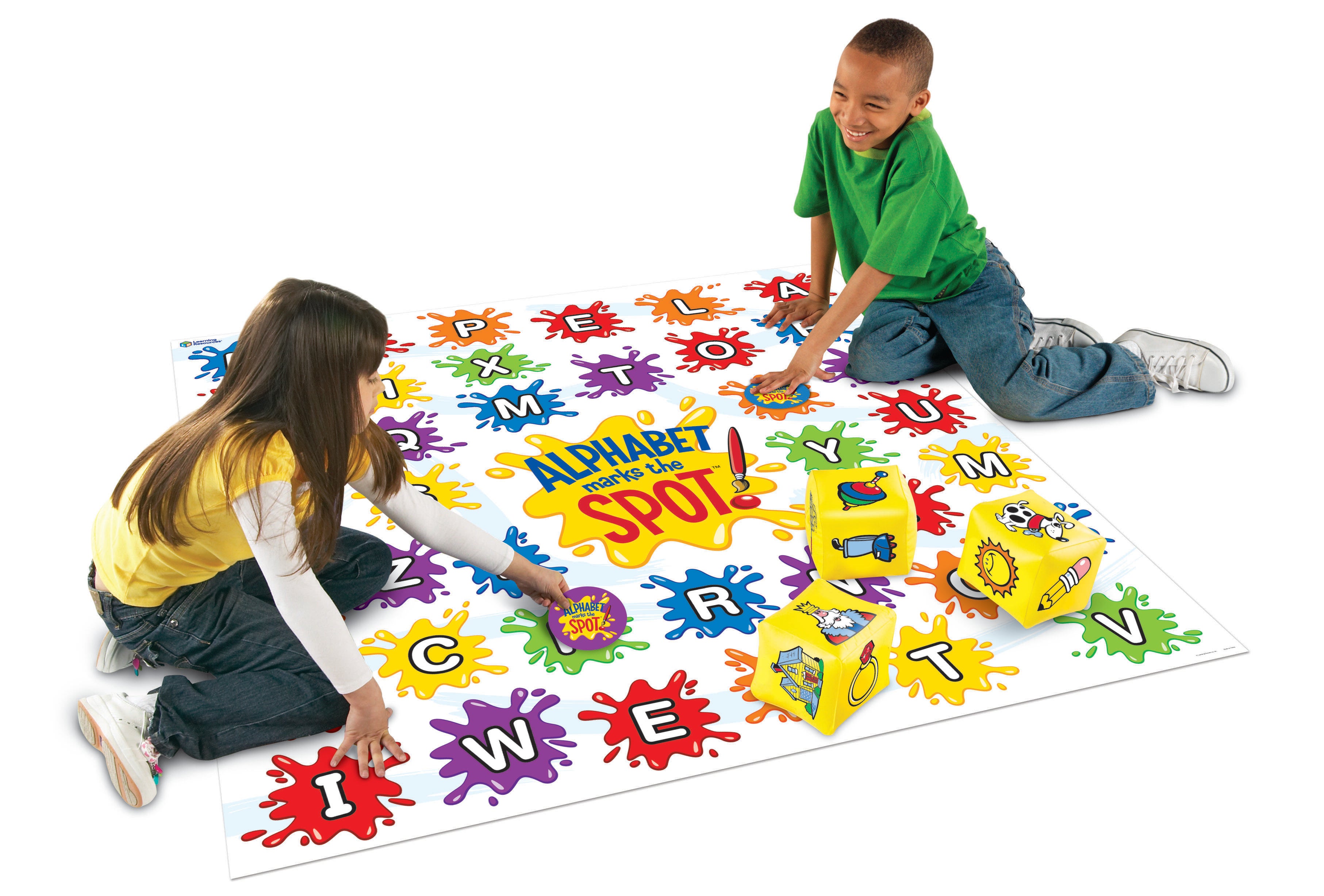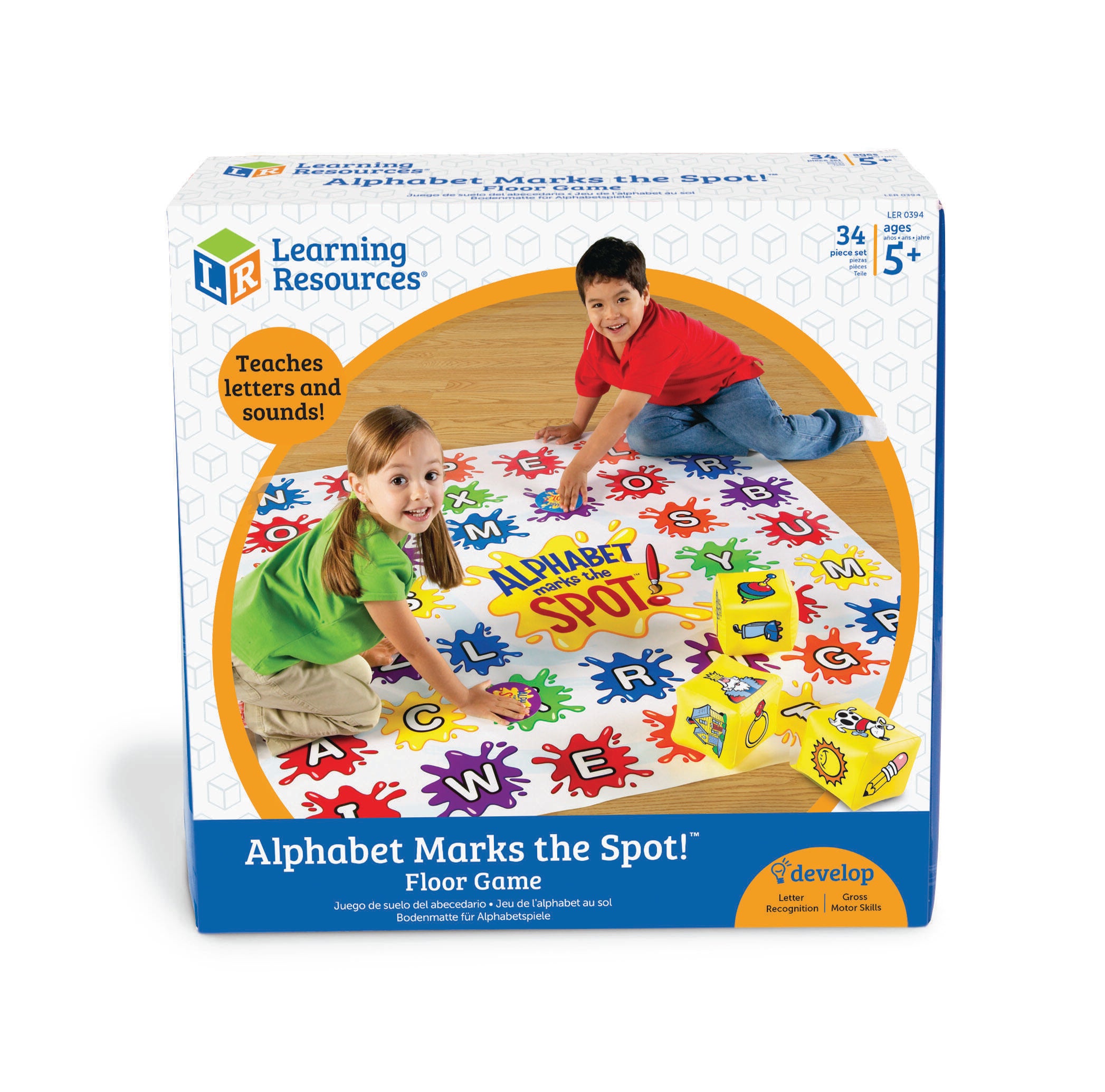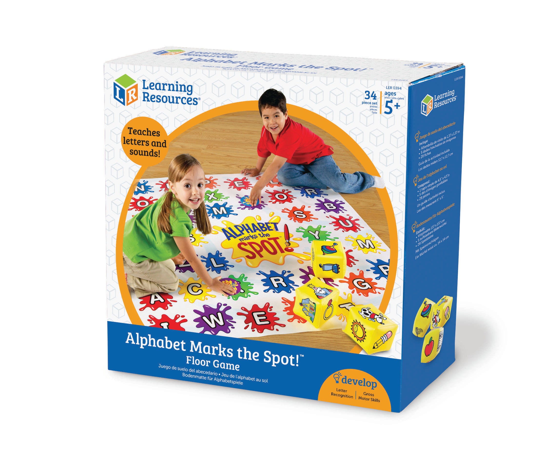 Learning Resources Marks the Spot provides a high-energy introduction to letters, sounds, alphabetical order, and print concepts. Features 8 different games! Includes vinyl alphabet mat, 5 inflatable illustrated cubes, game markers and activity guide. Mat measures 4 x 4 feet. For 1 or more players. Age 5 years.
