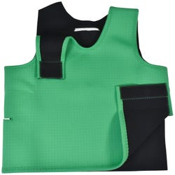 Like a warm, heavy embrace, this Deep Pressure Sensory Vest is a true comfort for children who need it. Two-piece designed vest is made from durable 2 mm perforated neoprene that is breathable and helps wearer maintain a comfortable body temperature. Created to increase child's body awareness, calm nerves, help promote attention and concentration, reduce fidgeting, and more. Hook-and-loop closures on the shoulders and sides provide a wide range of adjustability. The side closures can be adjusted in 2 sections to suit a variety of body shapes. Fits over most clothing. Measure around the chest for sizing purposes.Features