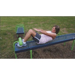 The ActionFit sit-up station targets the abdominal core by focusing on the abdominals and back. Student and adult users can place their feet under the support bar and lean back until their back is just off the bench. This fitness station is designed for ages 13 and up making it perfect for upper middle and high school campus gyms or exercise areas.Features
