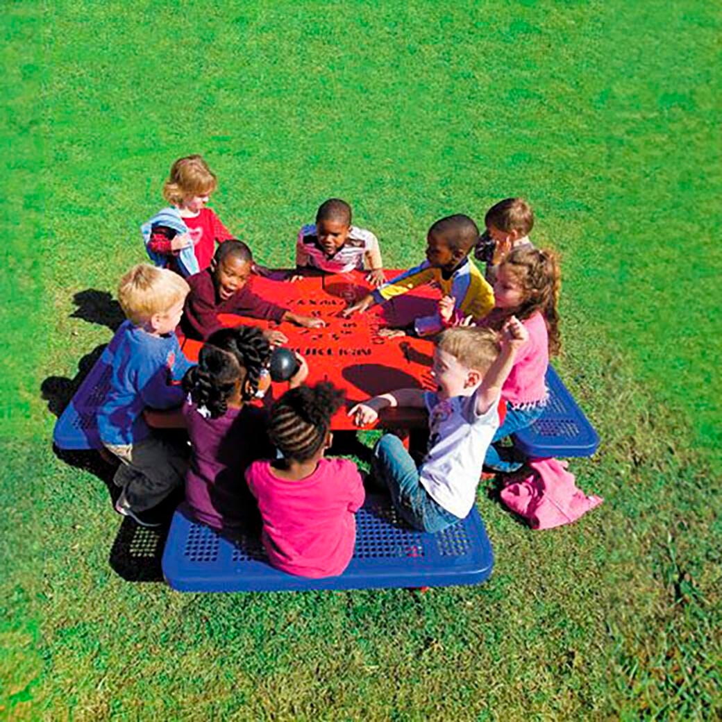 UltraSite Preschool Square Learning Picnic Table, 78-11/16 x 78-11/16 x 20 Inches, Blue Seat, Red Frame