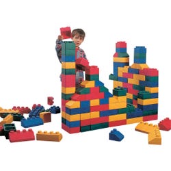 Super-size the building fun with these giant and safe foam blocks! Children will love to build, stack, and tear down their forts - from small to big 3D creations. Their imagination is the limit! Interlocking blocks are easy to connect and disconnect from the top, all while aiding in the development of gross motor skills and critical (and creative) STEM and STEAM inspired thinking. The standard basic building block measures 4-1/2 x 4-1/2 x 3-1/2 inches. Sold as set of 50 foam blocks. Safe for ages 6 months and up.Features