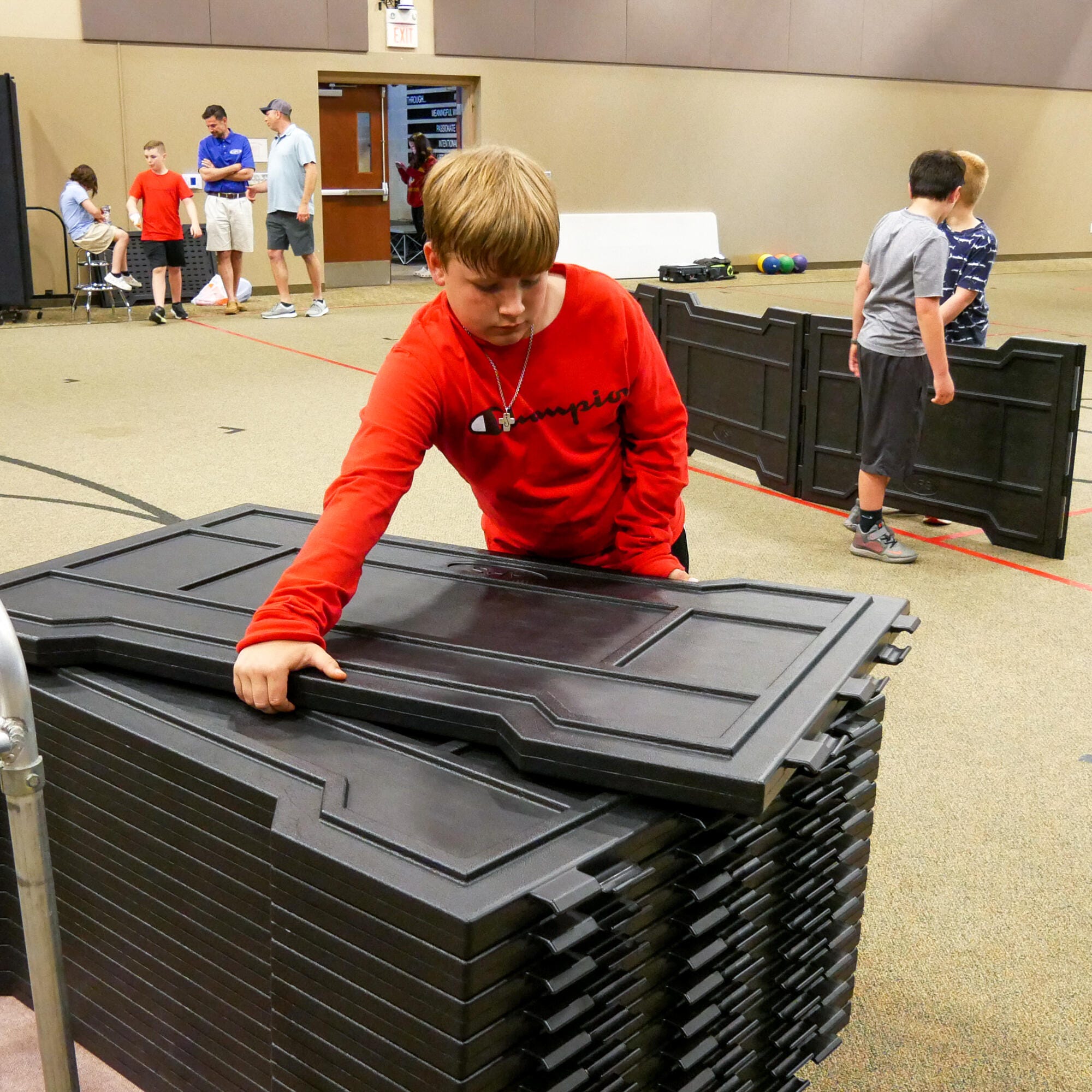 The perfect compliment to the standard GaGa Pit, the GaGa2Go is portable, it's easy to install and dismantle, and stores neatly in a 30 x 48 x 25 inch area. Requiring no hardware, the GaGa2Go is the perfect answer for indoor/outdoor temporary use for schools, churches, camps, and more. The Pit features 12-inch-high playground borders connected with stanchions. Includes 16 panels.