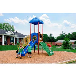 The most fun you'll find in a one-deck playground structure! The South Fork boasts engaging and safe climbing, sliding, and music opportunities. A specially designed window panel adds sensory play while giving caregivers increased visibility of the commercial-grade, durable structure. Three ground-level music components, including bongo drums and cymbals, ensure that children of all abilities will enjoy this structure. The nature-themed roof also helps to keep children cool as they explore the South Fork! This Play Structure includes an anchor bolt mounting kit, and is perfect for children ages 2 to 12. Available in colorful Playful theme.