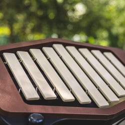The fiberglass bars on the Rhythm xylophone inspire rhythm and dance. It is a space-saving design providing the African sounds of a wooden instrument without the maintenance challenges. Rhythm is a natural-sounding instrument in a beautiful, natural color and a percussive cousin to the Melody.Features