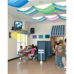 Cozy Shades filter out annoying hues in classrooms or cafeterias, softening the light for a cozier space. Designed for standard fluorescent fixtures used in schools. Includes set of 4 flame-retardant 54 x 24 inch (137.2 x 61cm) panels. Six magnets allow for single or double swags on each fixture. Search Cozy Shades for more colors.
