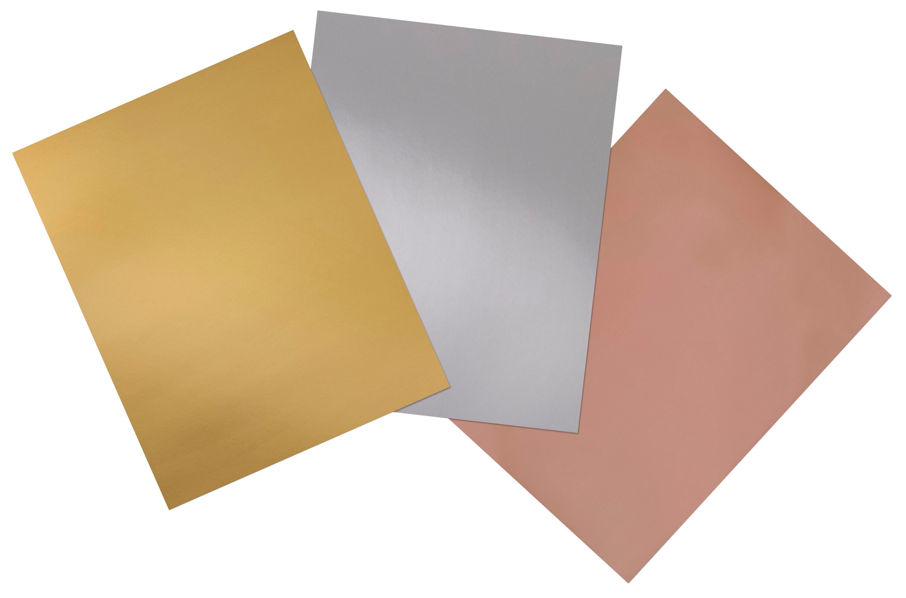 This Pacon® Gold Metallic 14 Point Poster Board is ideal for a variety of applications including backgrounds, posters, mounting, cut-out projects, and more. Each sheet measures 22 x 28 inches. The poster board has a metallic finish and is ink-coated on one side. Sold with 25 boards per pack.Features