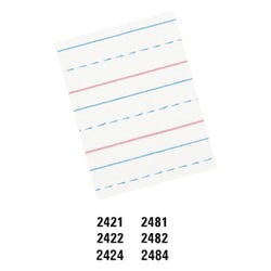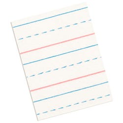 Pacon Multi-Program Handwriting Paper measuring 10-1/2 x 8 inches features long way ruling on both sides with red baselines, blue dotted midlines and blue headlines. Brilliant tablet paper for grade 1-2 has 1/2 inch ruling, 1/4 inch broken midline and 1/4 inch skip space. Paper offer rulings that conform to both the Zaner-Bloser and D'Nealian program, sold as 500 sheets per ream.