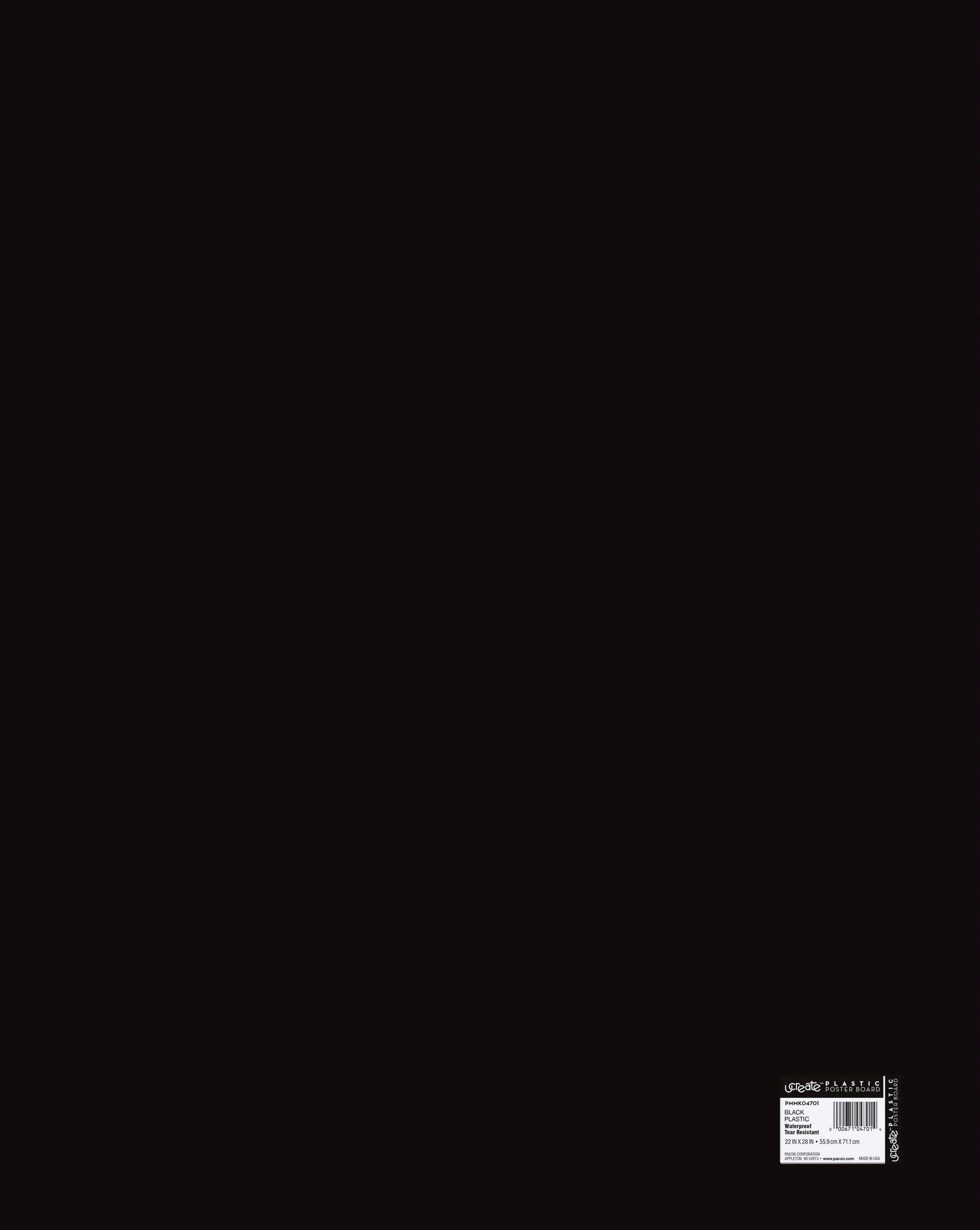 Pacon Plastic Poster Board is waterproof, tear resistant, durable and flexible. It accepts all types of media and is perfect for home, office, school and art projects. 12 point polyethylene material is lead free. Pack of 25 boards measuring 22 x 28 inches in black.Features