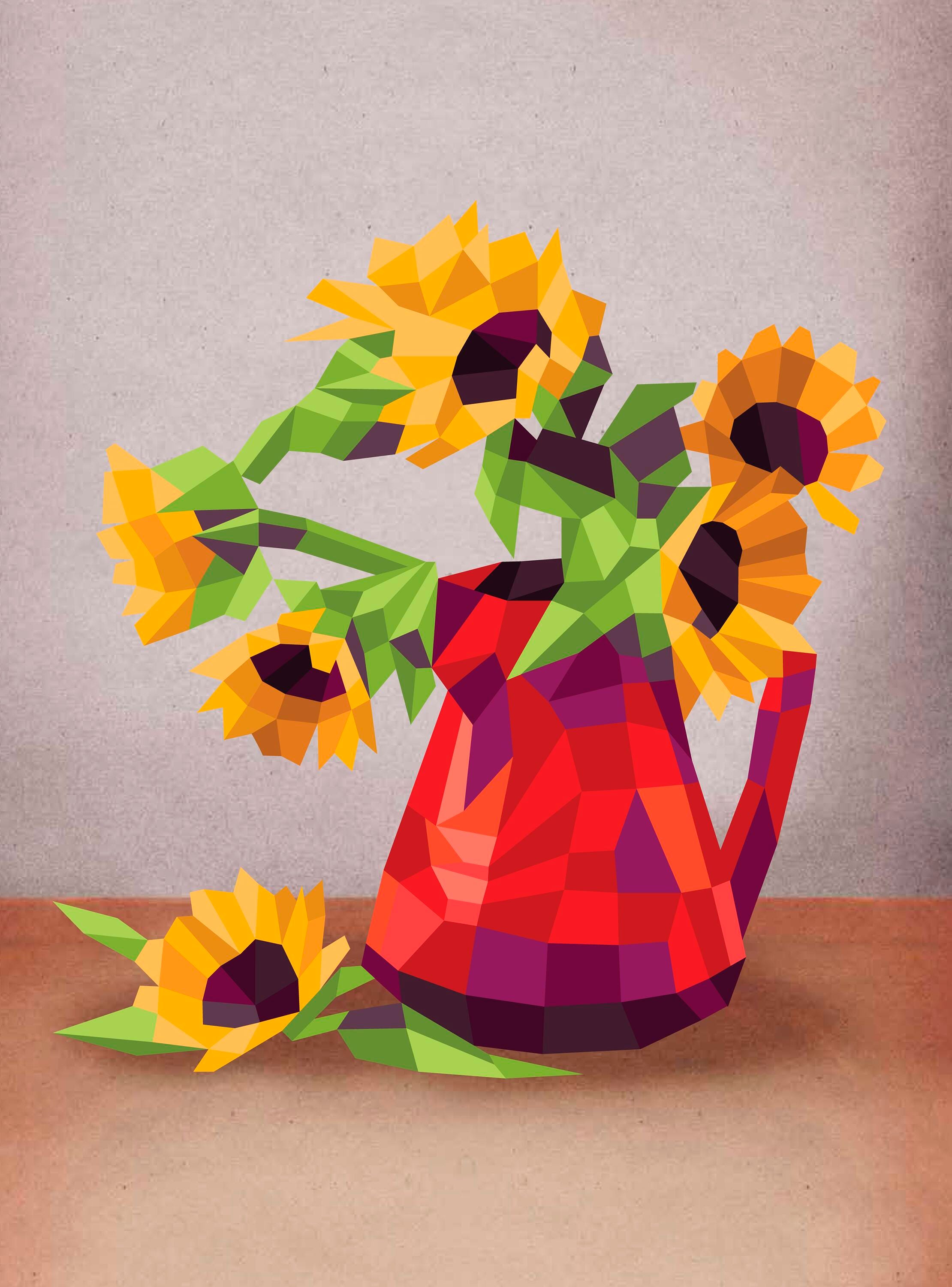 Introducing a compelling new activity for crafters, artists, doodlers, and coloring book enthusiasts of all ages. Paint by Sticker includes everything you need to create twelve vibrant, full-color "paintings." The images, including sunflowers, a fox, a hummingbird in mid-flight, and two boats on the water, are made with low-poly art, a computer graphics style that creates a 3-D effect. Each template is divided into dozens of spaces, each with a number that corresponds to a particular colored sticker. Find the sticker, peel it, and place it in the right space. The pages are perforated for easy removal, making it simple to frame the completed images.