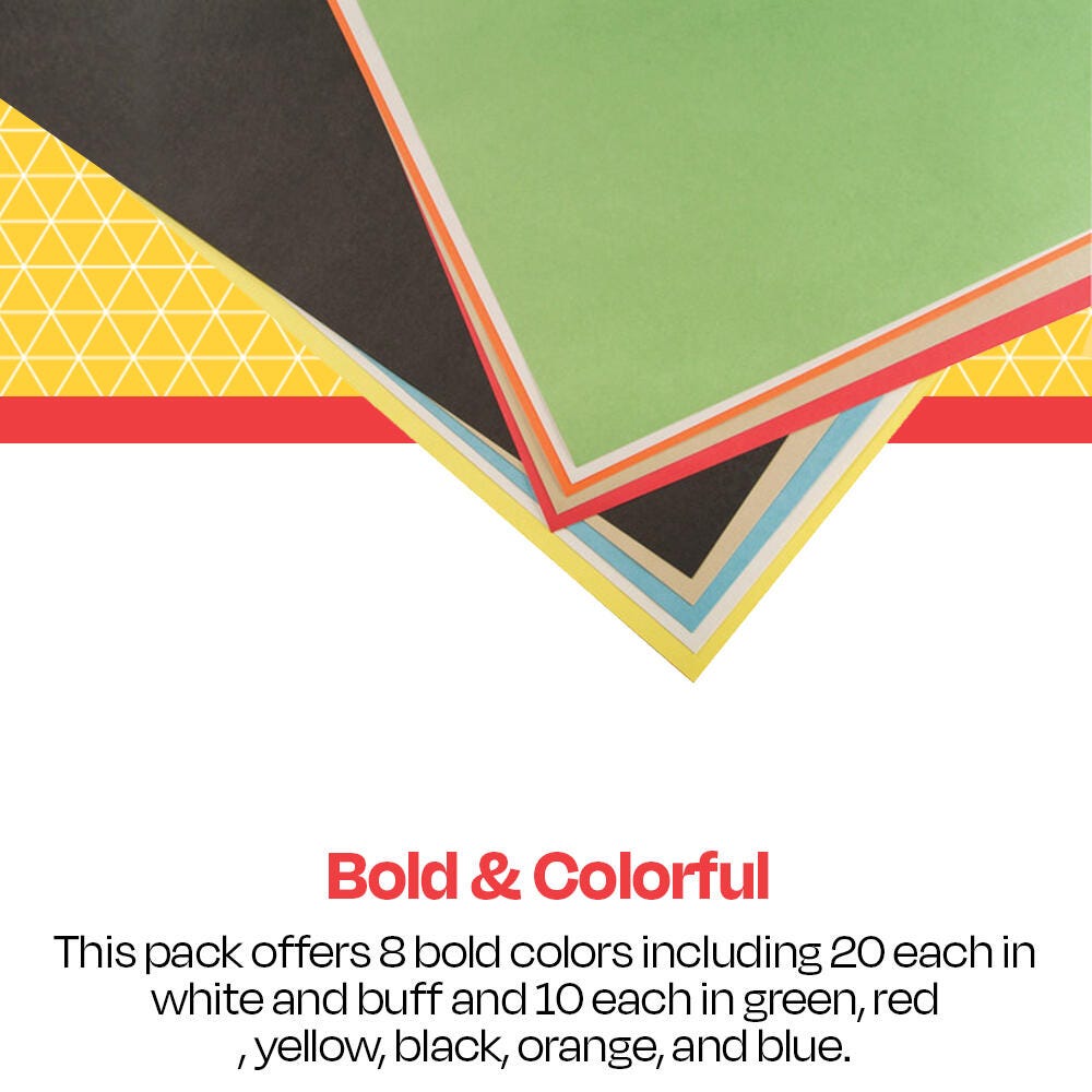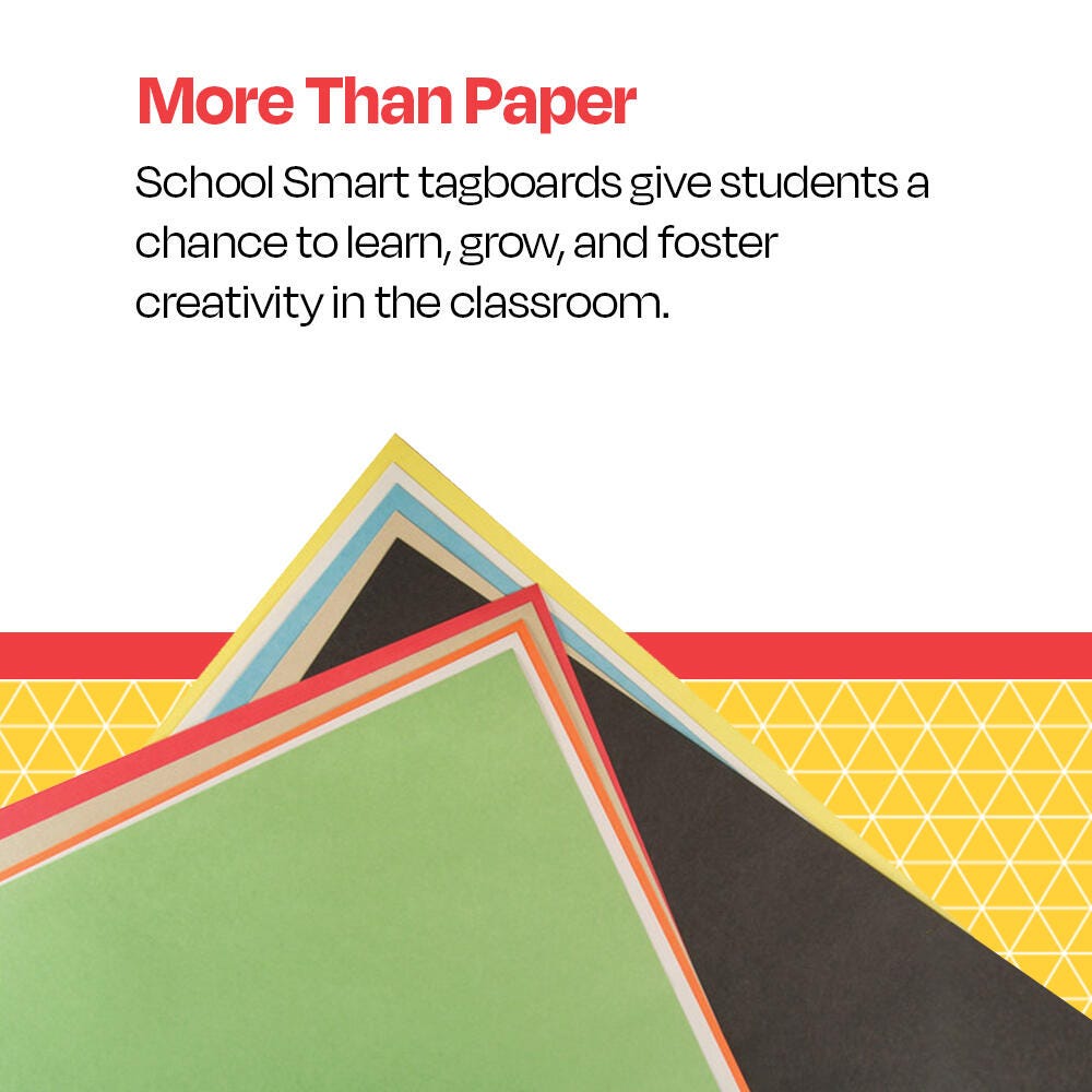 School Smart Light-Weight Tagboard with a total of 100 sheets measuring 22-1/2 x 28-1/2 inches with smooth finish is colored on both sides. This two-ply board is light in weight with 20 each of white and buff sheets and 10 each of green, red, yellow, black, orange, and blue sheets.
