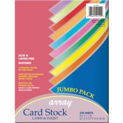Array Card Stock Paper, 8-1/2 x 11 inches, features 250 vibrant assorted color sheets. Ideal for crafting, classroom projects, office presentations, and creative activities.