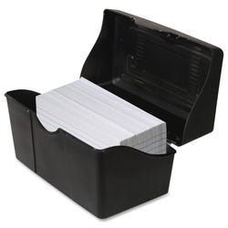 Advantus Black Index Card Box measuring 3 x 5 inches is made from durable plastic and comes with a snap lid.Features