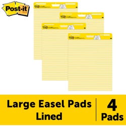 Post-It Self-Stick Easel Pads, 25 x 30 Inches, Ruled, Yellow, 30 Sheets, Pack of 4