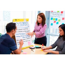 Turn the tables in your favor with Post-it Table Top Easel Pads. They give you all the advantages that Post-It Self-Stick Easel Pads offer plus a built-in stand that sets up easily in just seconds. They are ideal for small meetings and one-on-one presentations. The sturdy backcard easily converts to an easel stand for tabletop use. The bright white, premium sheets resists marker bleed-through; they stick to most surfaces and can be repositioned again and again, without surface damage.Features