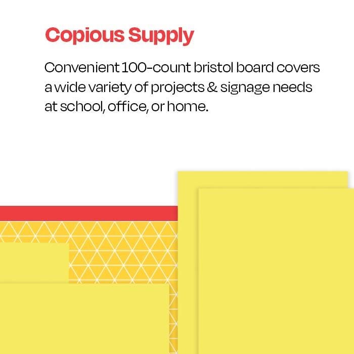 Whether creating a masterpiece or a prize-winning presentation, School Smart has got you covered! Our medium-weight, canary bristol board has excellent folding quality with clean creases for making signs, posters, and a variety of construction craft work. Each board is made of 100 percent sulphite with 100 lb. weight basis that keeps your designs clean, smear- and blot-free, while great for mixed media to capture any idea!