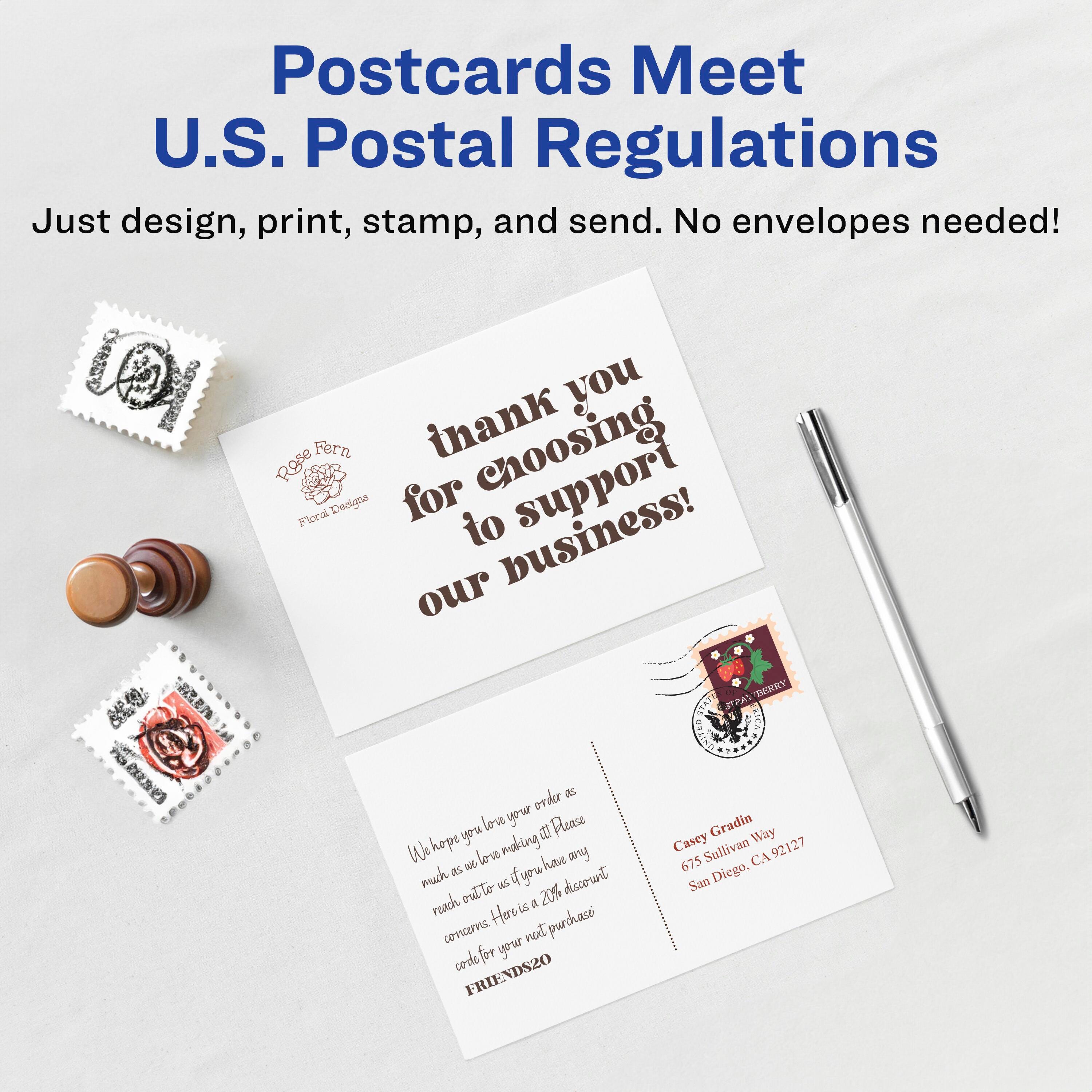 Conveniently customizable postcards mean that you can make changes and print new cards at a moment's notice