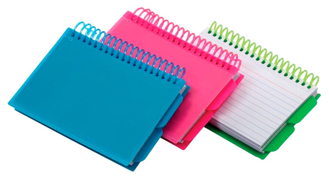 Durable poly construction resists moisture, wear and tear. View front pocket lets you customize the cover. Two repositionable tabs for quick organizing. 50 White, ruled index cards for note taking. Cards are perforated for easy removal. Ruled on one side. Assorted Colors (Pink, Green and Blue). Sorry, no color choice.