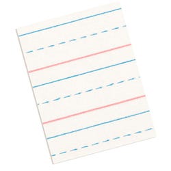 Pacon Multi-Program Handwriting Paper measuring 8 x 10-1/2 inches features short way ruling on both sides with red baselines, blue dotted midlines and blue headlines. Brilliant tablet paper for grade 2-3 has 1/2 inch ruling, 1/4 inch broken midline and 1/4 inch skip space. Paper offer rulings that conform to both the Zaner-Bloser and D'Nealian program, sold as 500 sheets per ream.