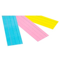 Pacon Dry Erase Sentence Strip measures 3 x 24 inches and offers durability and teachers can use them again and again. Strip is ruled 1-1/2 inch with a red baseline and a 3/4 inch dotted midline on the dry erase side. The assorted pack contains blue, pink and yellow colored strips.Features