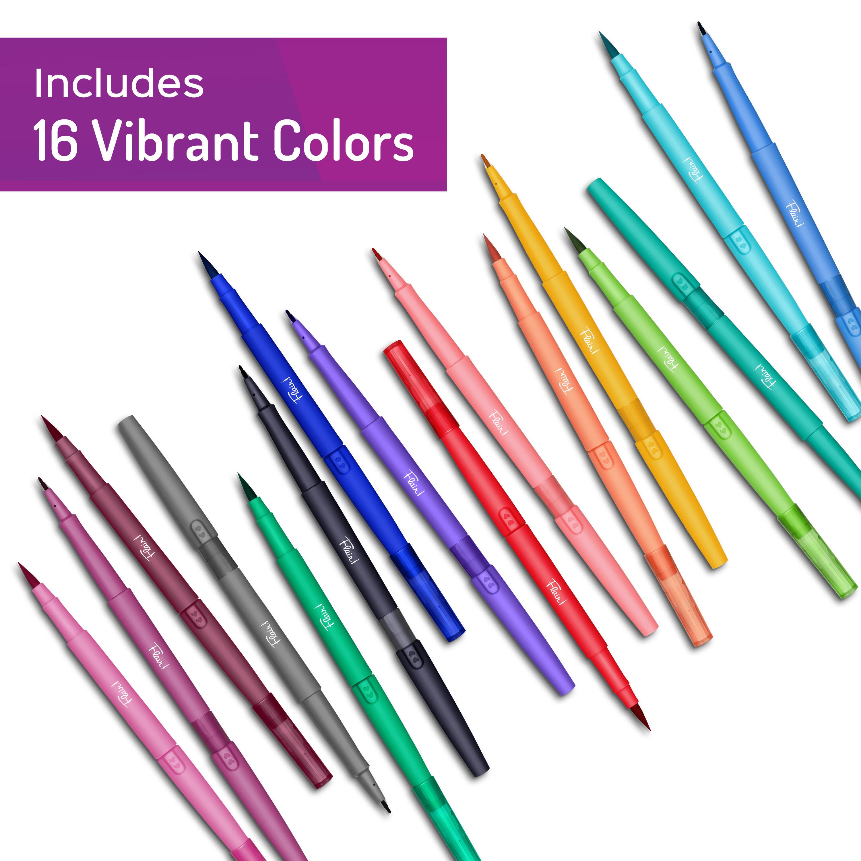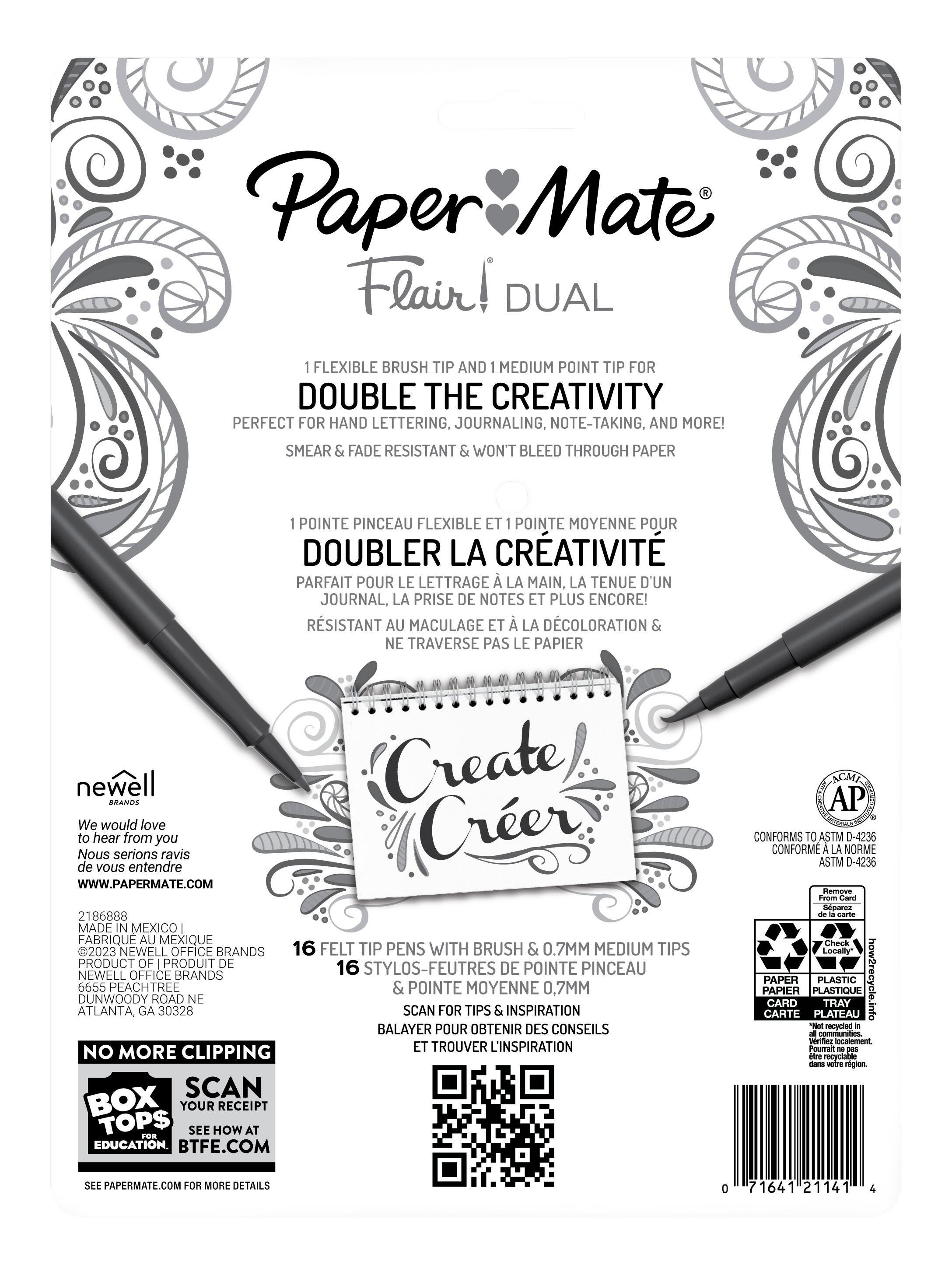 Paper Mate Flair DUAL Pens, Brush and Medium Tips, 0.7 mm, Assorted Colors, Pack of 16