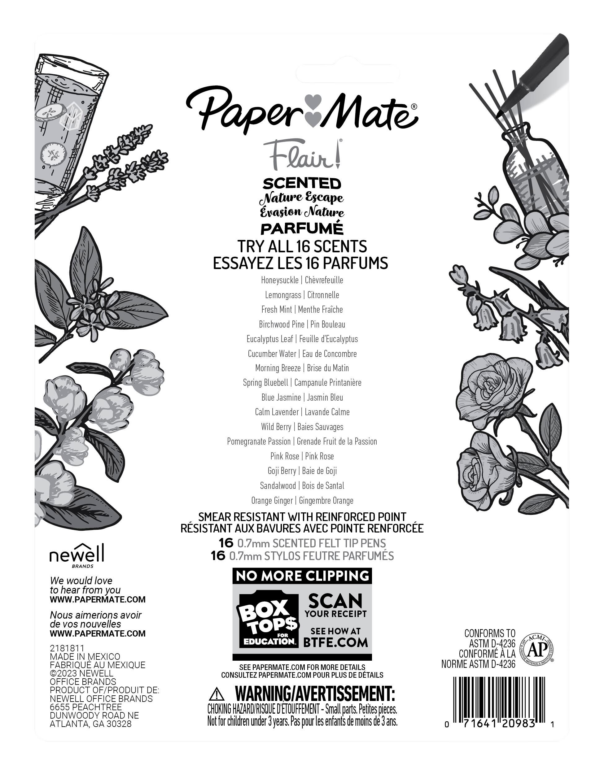 Paper Mate Flair Scented Felt Tip Pens, Medium Point, 0.7 mm, Assorted Nature Escape Scents and Colors, Pack of 16