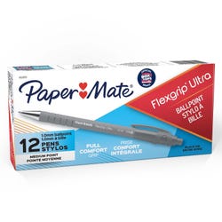 Paper Mate FlexGrip Ultra Retractable Ballpoint Pen, Medium Point, 1.0 mm, Black, Pack of 12