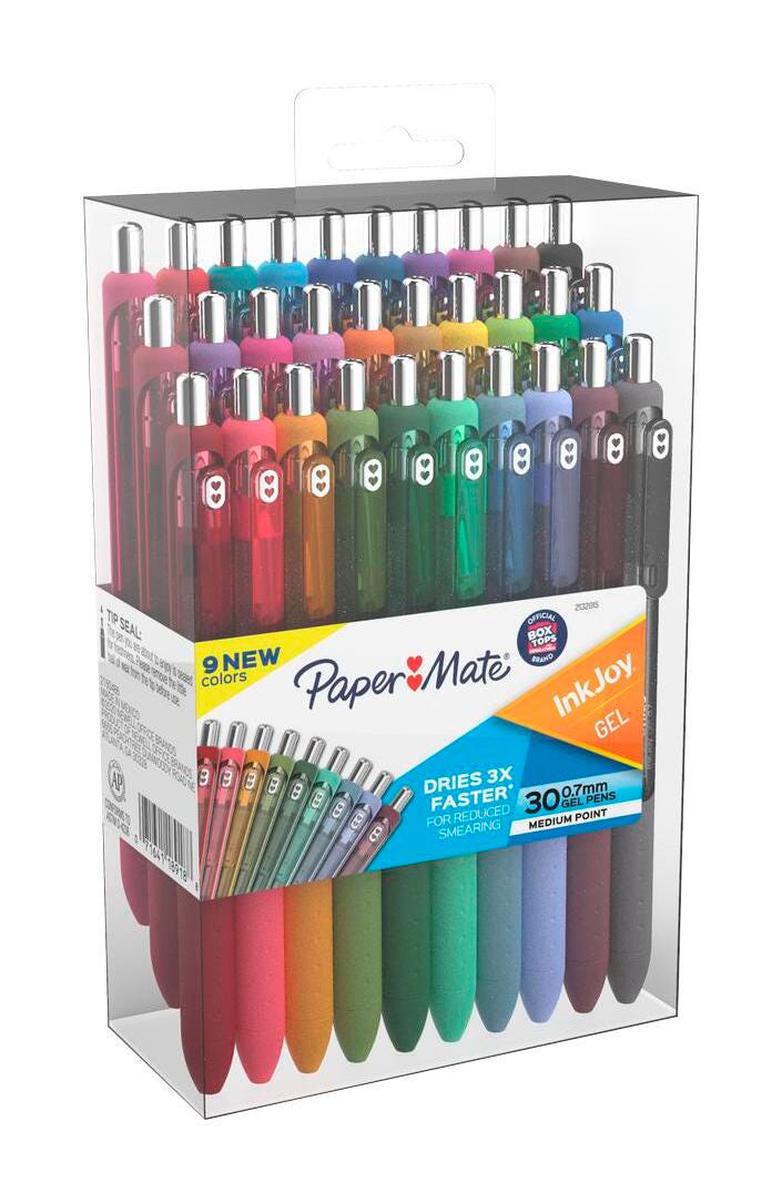 • Paper Mate InkJoy Retractable Gel Pens, Medium Point, 0.7 mm, Assorted Colors, Pack of 30