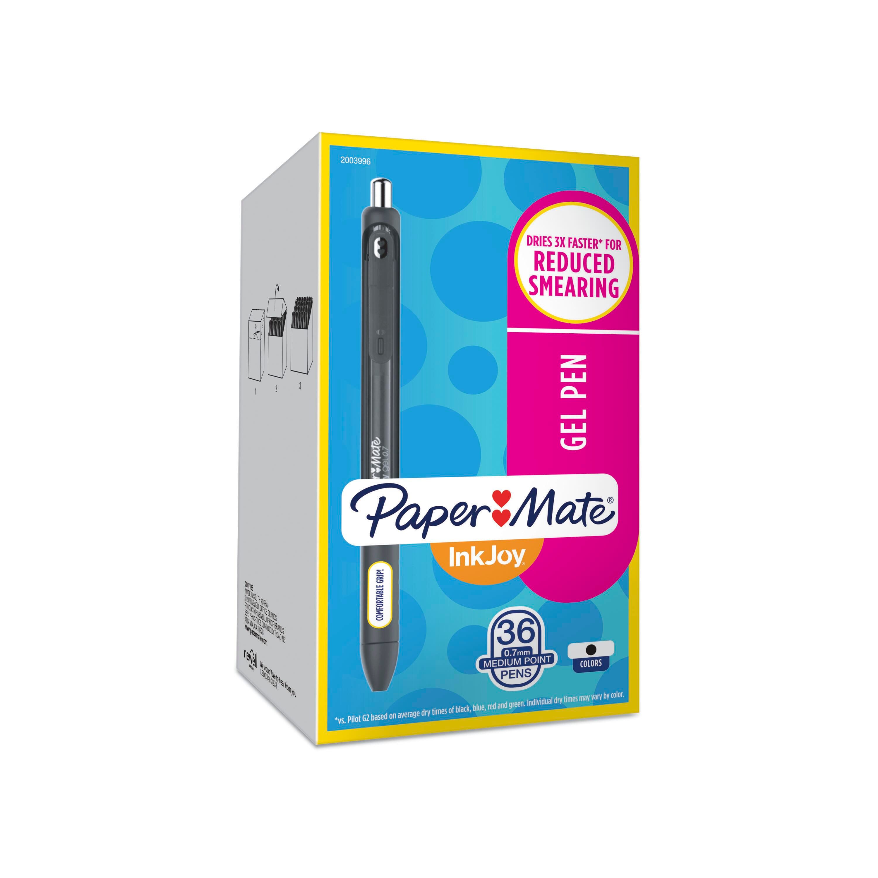 • Paper Mate InkJoy Retractable Gel Pens, Medium Point, 0.7 mm, Black, Pack of 36