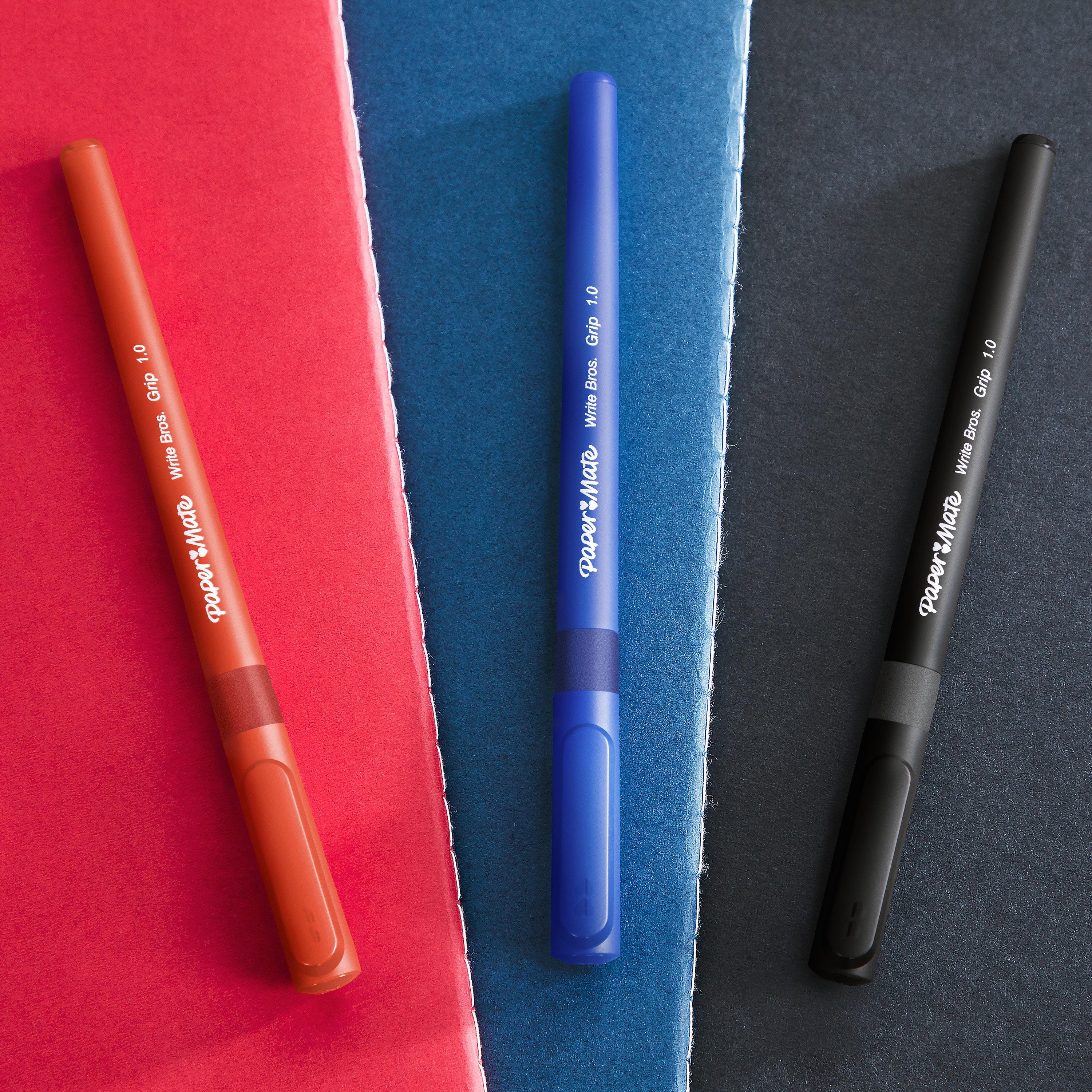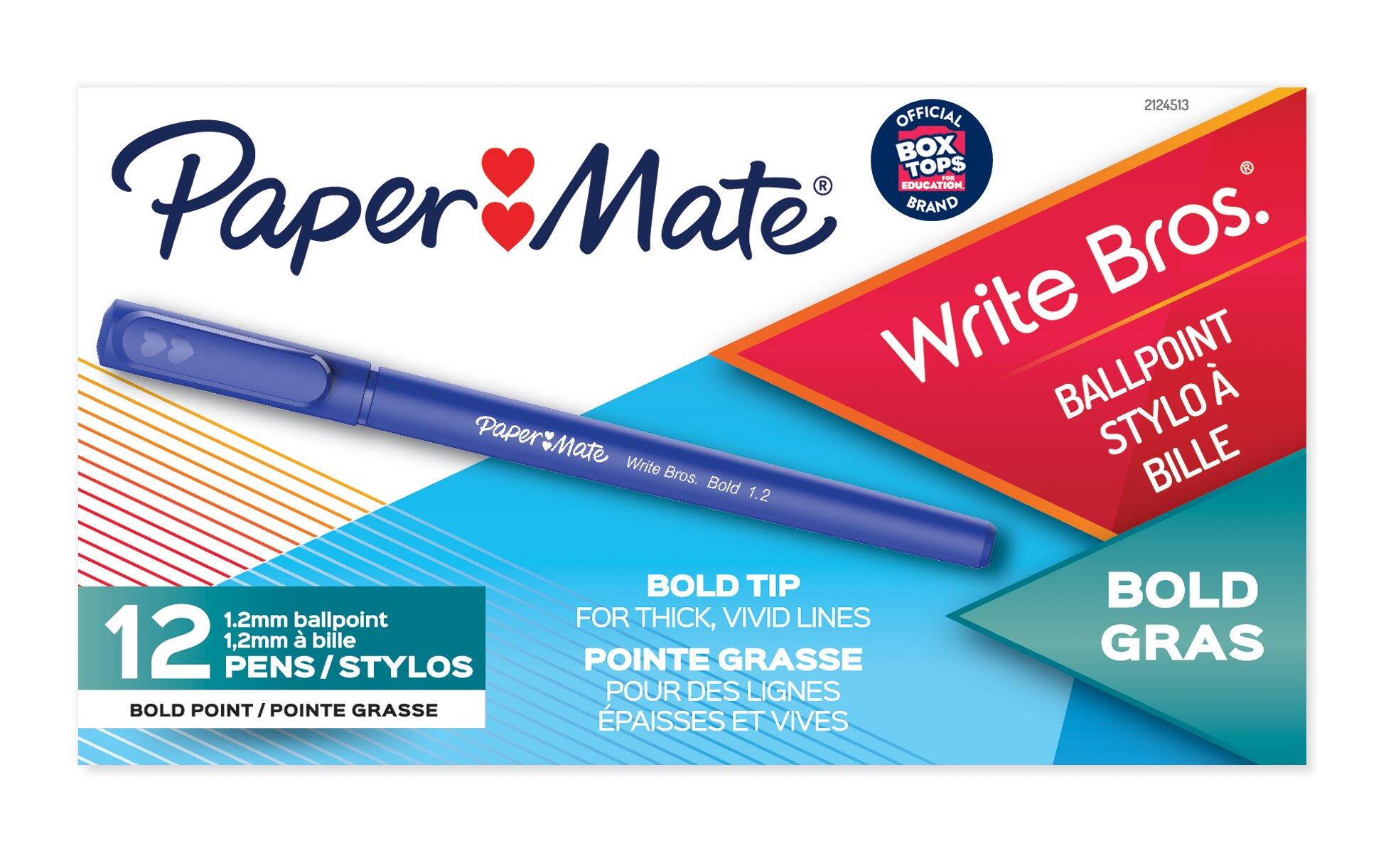 Experience brilliantly smooth writing for any occassion with Paper Mate Write Bros. Ballpoint Pens. Each pen features a bold 1.2 mm ballpoint tip, an extended grip area, and ultra-low viscosity ink for an effortless and comfortable writing experience. This pack includes 12 blue pens.
