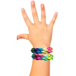 In a varied assortment of sizes and bold colors, loopers are ideal for making potholders, mats, and a wide variety of useful or functional craft items. Each colorful, non-stretchy band is made with cotton and synthetic fibers. Set comes with needle and instructions and is fun for all ages 5 and up. Includes 1 pound of Loopers. Complement the bands with the Pepperell Braiding Square Metal Weaving Loom at 7-1/4 inches (sold separately) to start creating beautiful looms that even beginners will learn to master! Colors may vary.Features