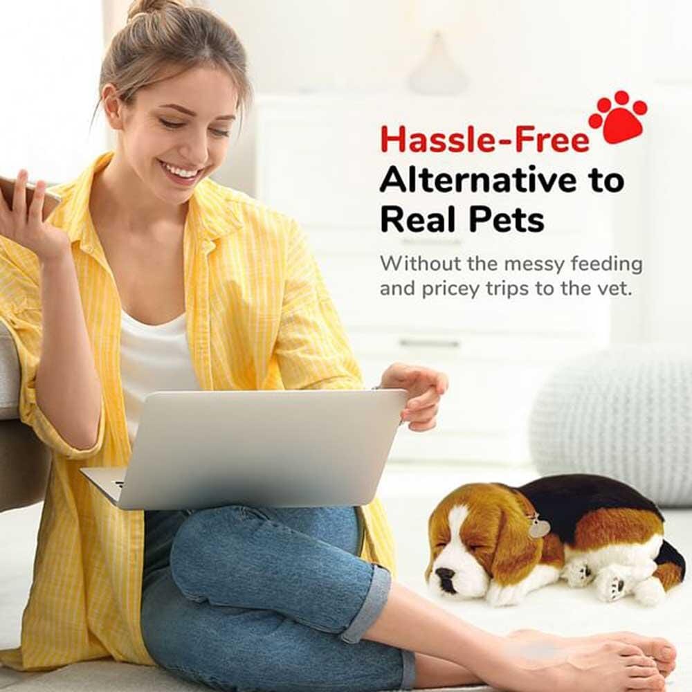 These adorable life-like animals offer a pet companionship experience for all ages, without the hassle and responsibilities of caring for a real pet! Each pet "breathes" and their 100% synthetic fur is soft to stroke as they rest in your lap. Pets will breathe continuously for approximately 3-4 months by using the alkaline D battery (included) - possibly longer should you disconnect the battery between uses. No on-off switch. Clean only with a soft cloth lightly dampened with water to keep neat and tidy. Beagle measures 9-1/2 L x 7 W x 3 H inches. Carrier box measures 11 L x 7-3/4 W x 5 H inches when flat, and 11 L x 7-3/4 W x 9 H inches with the tent up. Bed measures 13 L x 10 W x 2 H inches.Features