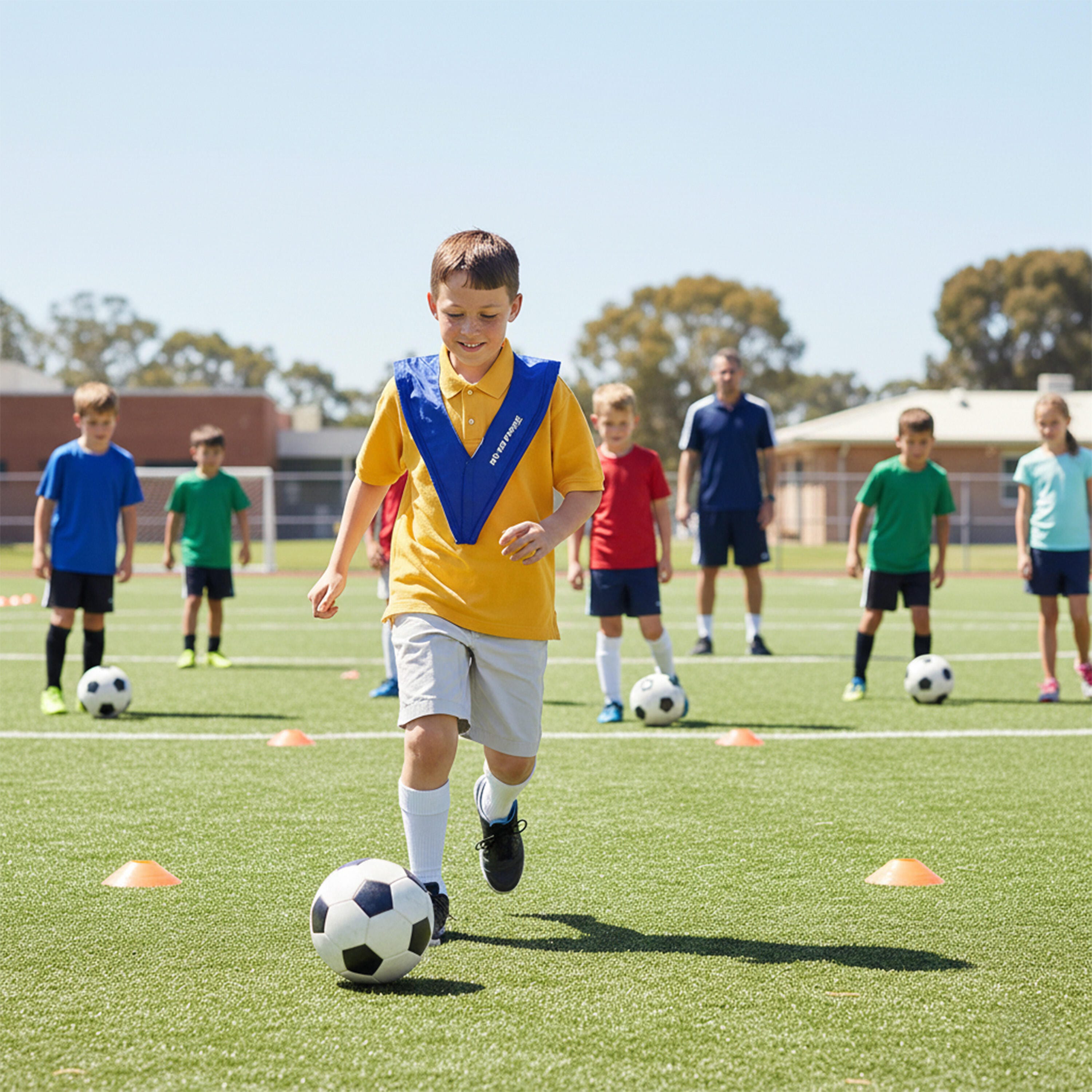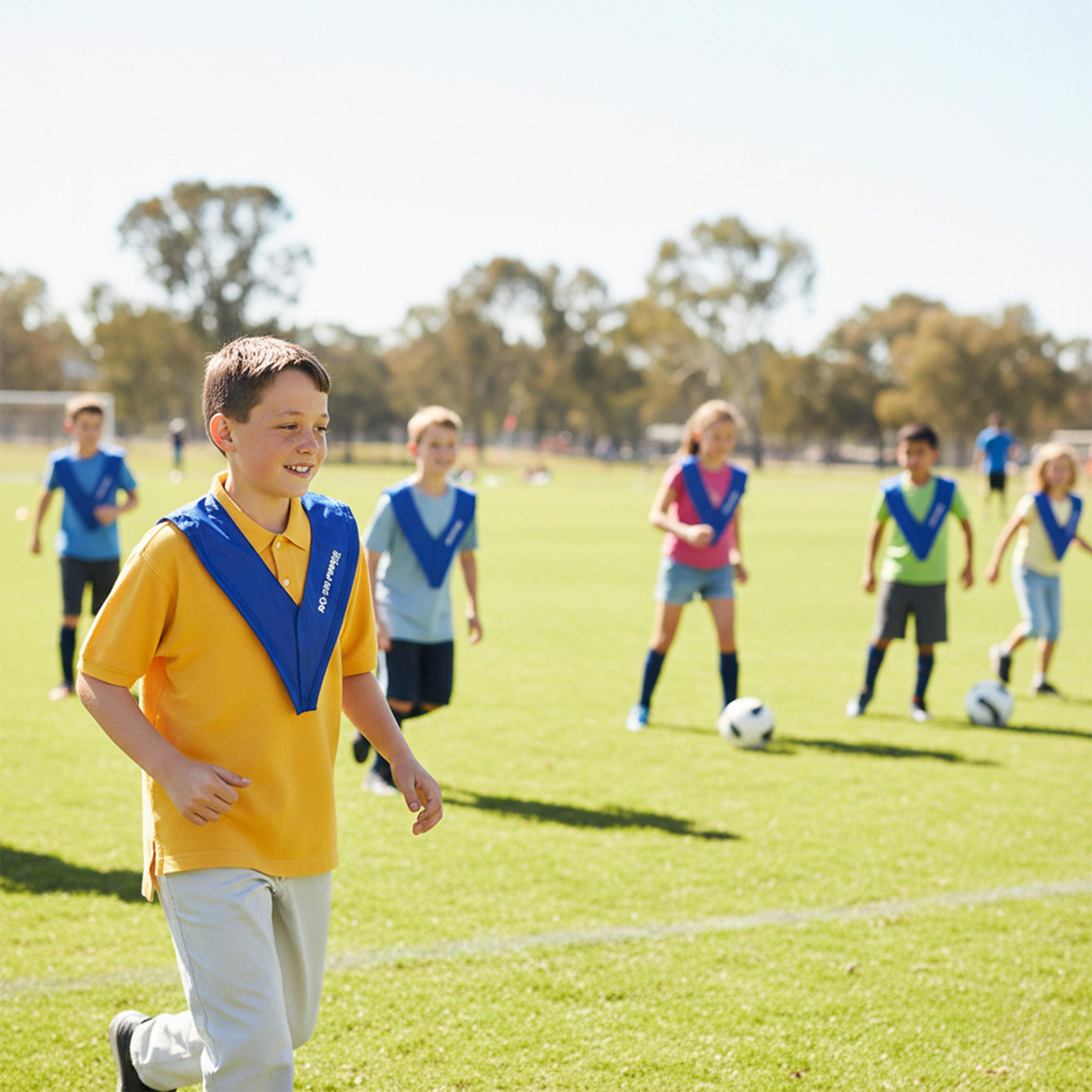 The easiest pinnie ever! No need for students to pull pinnies over their heads. This FlagHouse exclusive mounts around the neck and over the shoulders, and closes in the front with touch fasteners. Slightly weighted piping around the perimeter prevents pinnie from sliding around. V-shaped front provides plenty of visibility when bending over. Nylon construction.